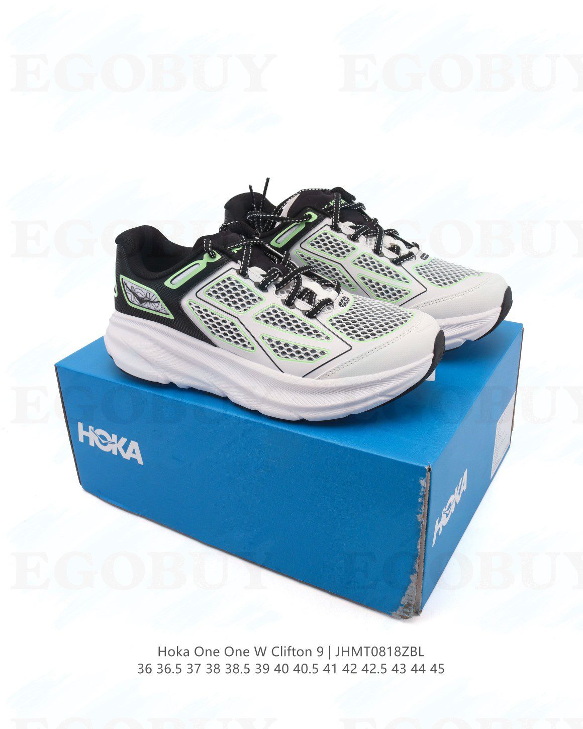 HOKA ONE ONE 升级款 Clifton 9 克利夫顿9代 男女士休闲跑步鞋轻量缓震运动鞋。此次,Clifton 9 厚了也轻了。非凡脚感,更厚更轻更稳定。作为HOKA经典路跑鞋款,Clifton 系列自面世以来便备受瞩目,已依靠跑者的口口相传,成为HOKA路跑家族的口碑之选。此次Clifton 9在轻量缓震的基础上再次升级,比前代中底加厚3mm,但整体重量却又减轻了4g;中底方面,Clifton 9采用全新泡棉中底,更加柔软的同时增强了回弹性能,为不同水平的跑者提供更平稳流畅的脚感,也带来更全面的缓冲保护,让跑者的每一步都拥有强劲的支撑和推进力。此外,Clifton 9还对鞋面进行升级,以轻盈透气的针织网面搭配更为柔软且防止移动的鞋舌,增强了跑鞋的平衡耐久性,让跑者在舒适的包裹中跑出更多乐趣。