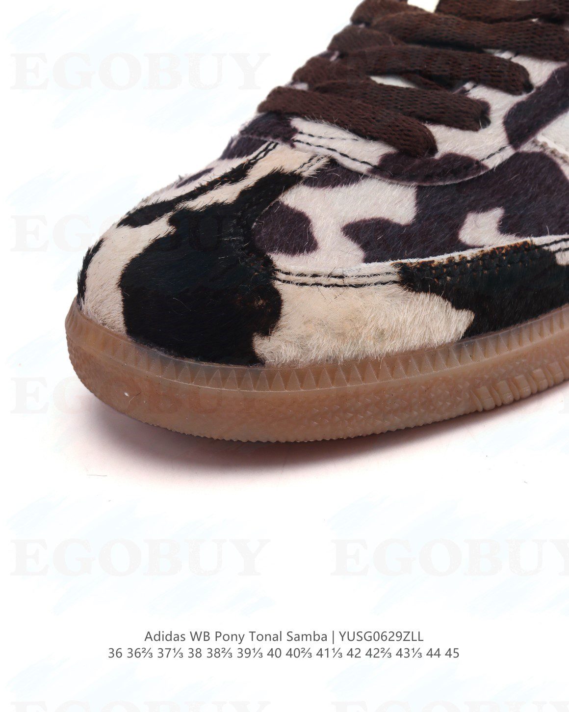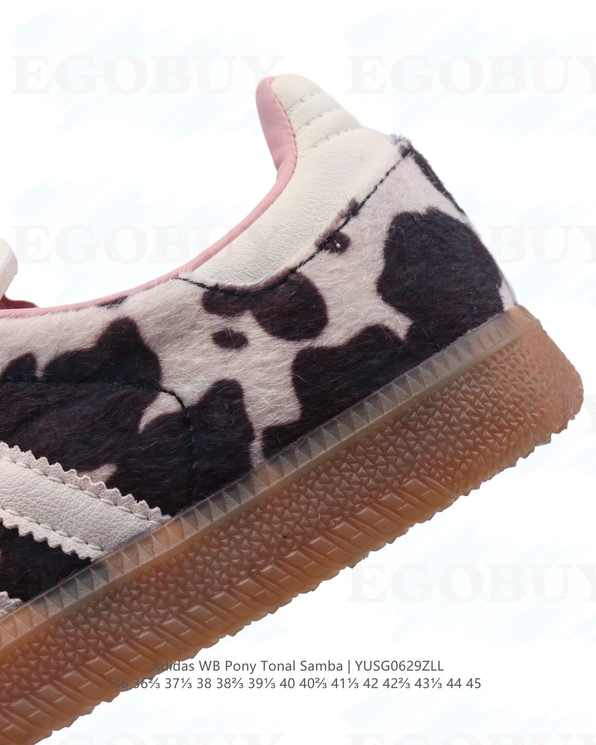 阿迪达斯 Adidas WB Pony Tonal Samba 奶牛🐄斑点印花毛绒运动板鞋 经典三叶草与德训鞋结合 复古种草。2025年新款,是阿迪达斯Samba之年。Samba系列的爆火,得益于去年卡塔尔世界杯举行而推动的Blokecore风格。这种围绕着足球为主题的而塑造的穿搭风潮,将复古运动时尚重新带回到大众视野。一些经典的球衣、vintage外套、球鞋也再次成为年轻玩家的心头好。Bella Hadid、A$AP Rocky、Kendall、Pharrell Williams等一众顶流纷纷上脚,无论是街头风、极简风还是辣妹风,它都能完美的融入。