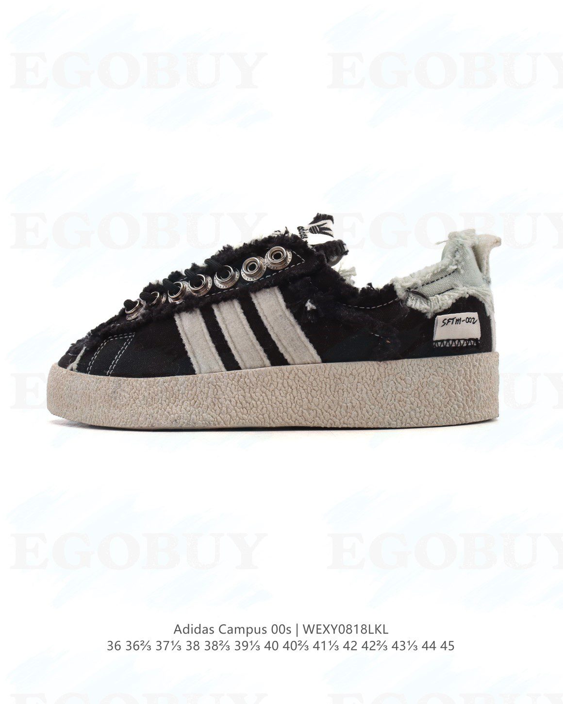 Adidas/阿迪达斯 男女鞋半码制,原楦开发版型,采用棉质帆布组合环保纤维革鞋面材质,原档案开发铝楦楦型,正确硫化组合鞋底 每次人气都不低!三叶草「复古新鞋」来了!澳洲时尚品牌/Song for the Mute x adidas Originals SFTM-002 CAMPUS 80s”Seasame”80s学院系列低帮休闲运动帆布硫化板鞋“联名帆布鸳鸯鞋”。