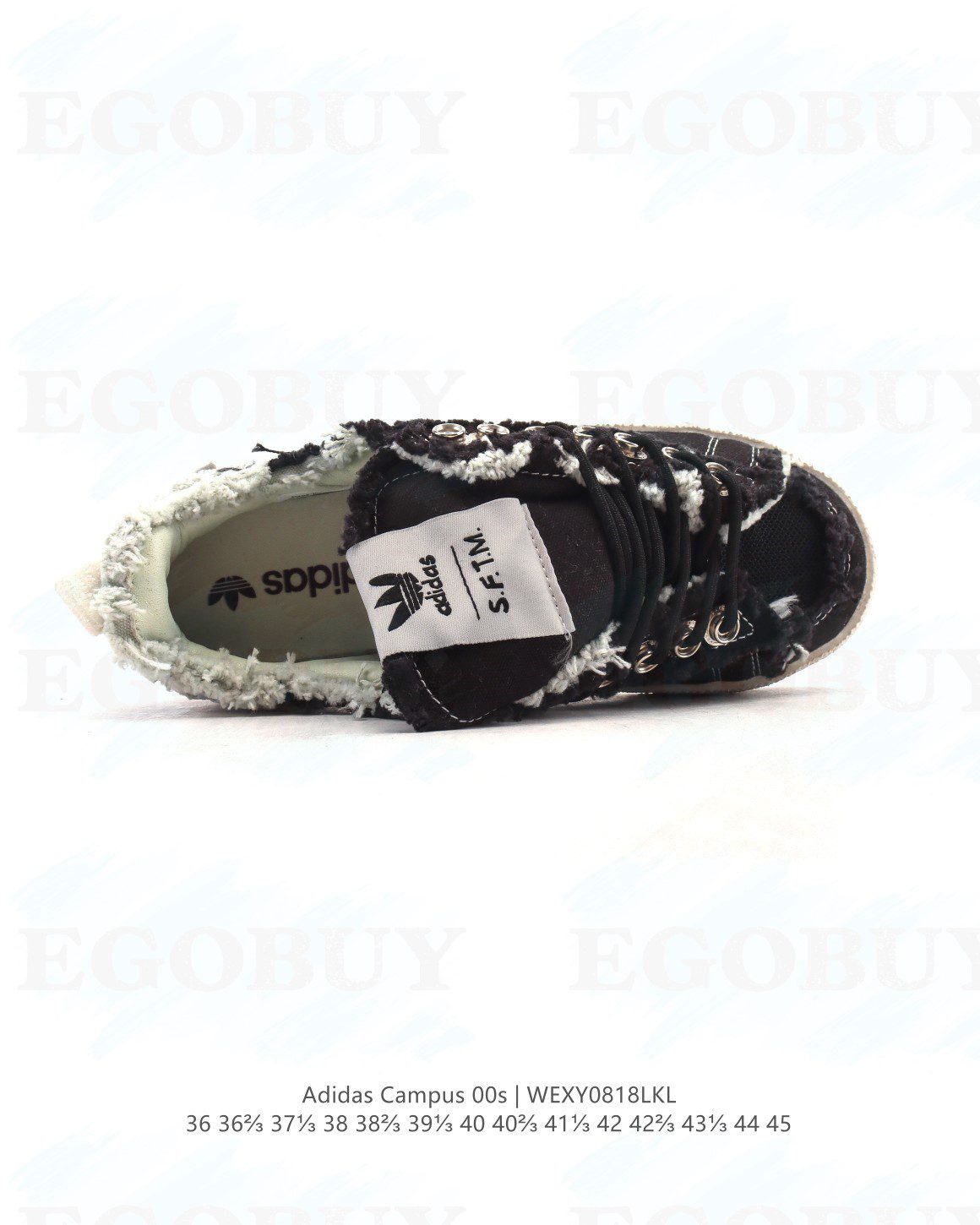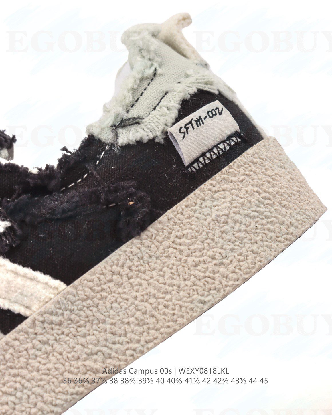 Adidas/阿迪达斯 男女鞋半码制,原楦开发版型,采用棉质帆布组合环保纤维革鞋面材质,原档案开发铝楦楦型,正确硫化组合鞋底 每次人气都不低!三叶草「复古新鞋」来了!澳洲时尚品牌/Song for the Mute x adidas Originals SFTM-002 CAMPUS 80s”Seasame”80s学院系列低帮休闲运动帆布硫化板鞋“联名帆布鸳鸯鞋”。
