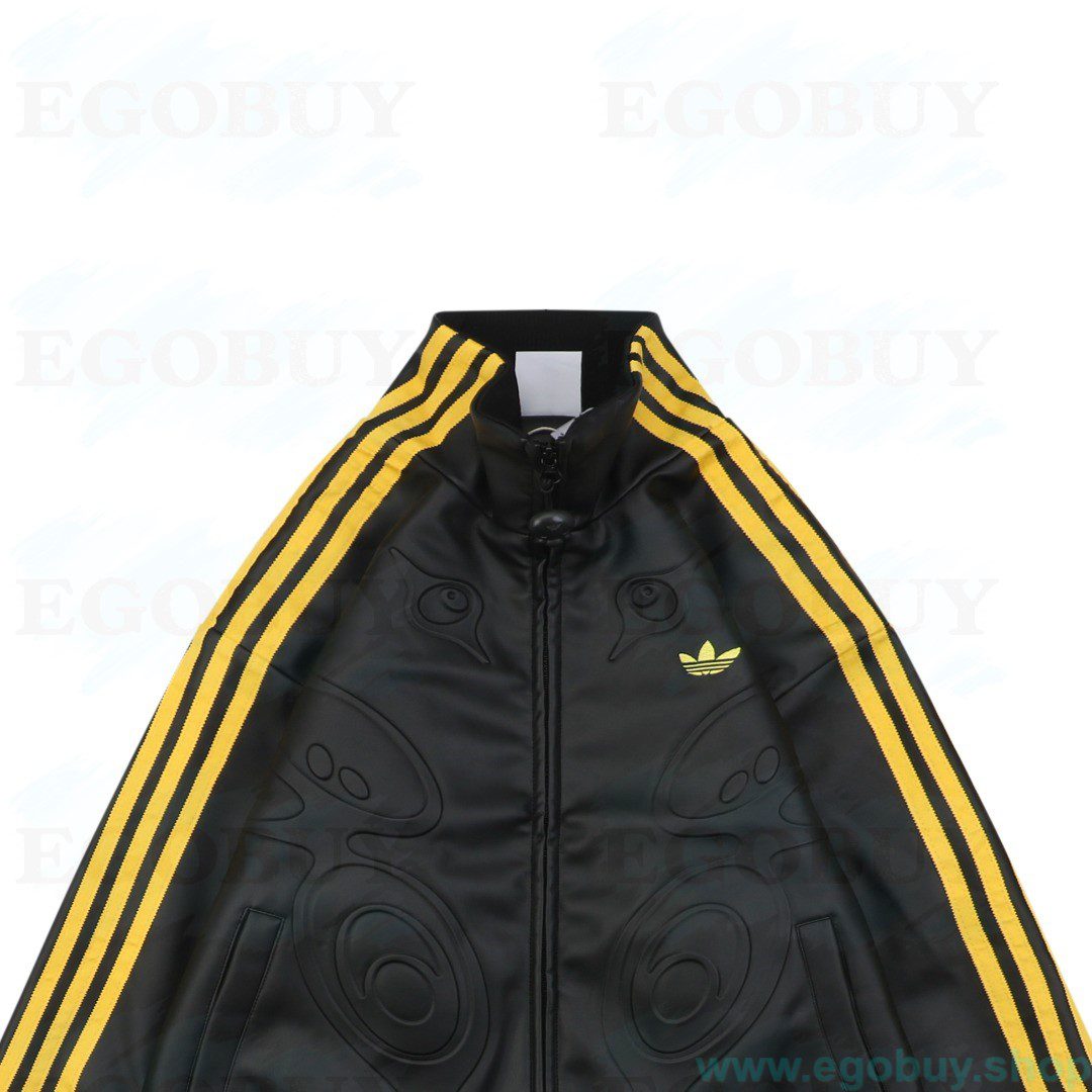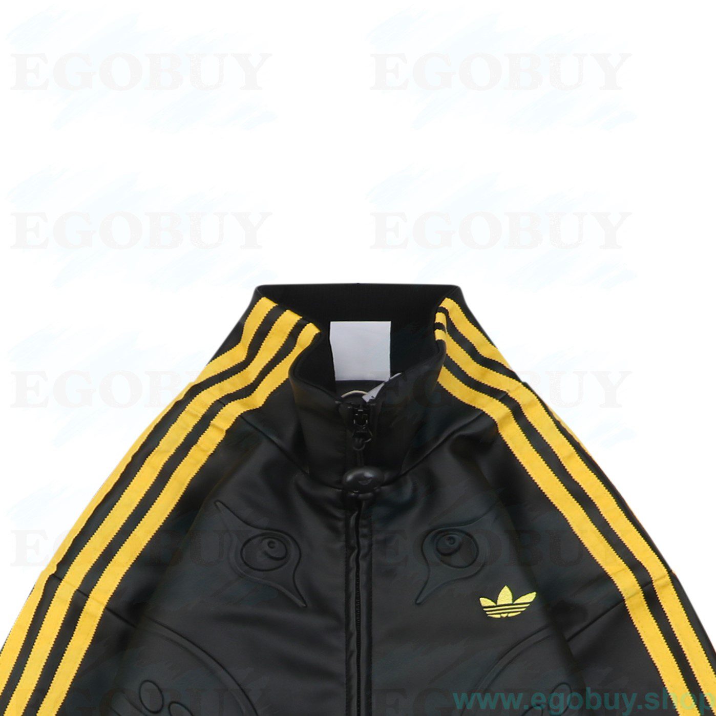 Adidas/阿迪 25Fw 三杠压印仿皮夹克外套 这款夹克灵感源自《头文字D》中余文乐饰演的“中里毅”所穿的Y-3皮夹克,采用黑色底色与明黄色三道杠设计,经典配色情怀拉满,与香港新锐艺术家OFFGOD联名的仿皮立领夹克,将经典运动美学与前卫艺术设计完美融合。整体采用定制PU皮面料,皮质柔软且保暖不臃肿,配合原版钢印开模工艺,确保细节质感出众。立领夹克版型剪裁利落,上身效果立体有型,插肩袖设计尽显复古风味,胸口经典三叶草刺绣Logo与明黄色三条纹组合,致敬《头文字D》中里毅同款配色,情怀与潮流并存,下摆两侧实用口袋搭配定制三叶草Logo拉链,兼顾功能性与时尚感,在还原经典配色的同时,还融入了OFFGOD独特的压印图案等设计元素,极具辨识度。采用定制PU皮面料,皮质柔软,保暖又不显臃肿,全套定制辅料,这款夹克的Oversize版型和Unisex设计使其适合多种穿搭场景,男女同款 Size:S-XL