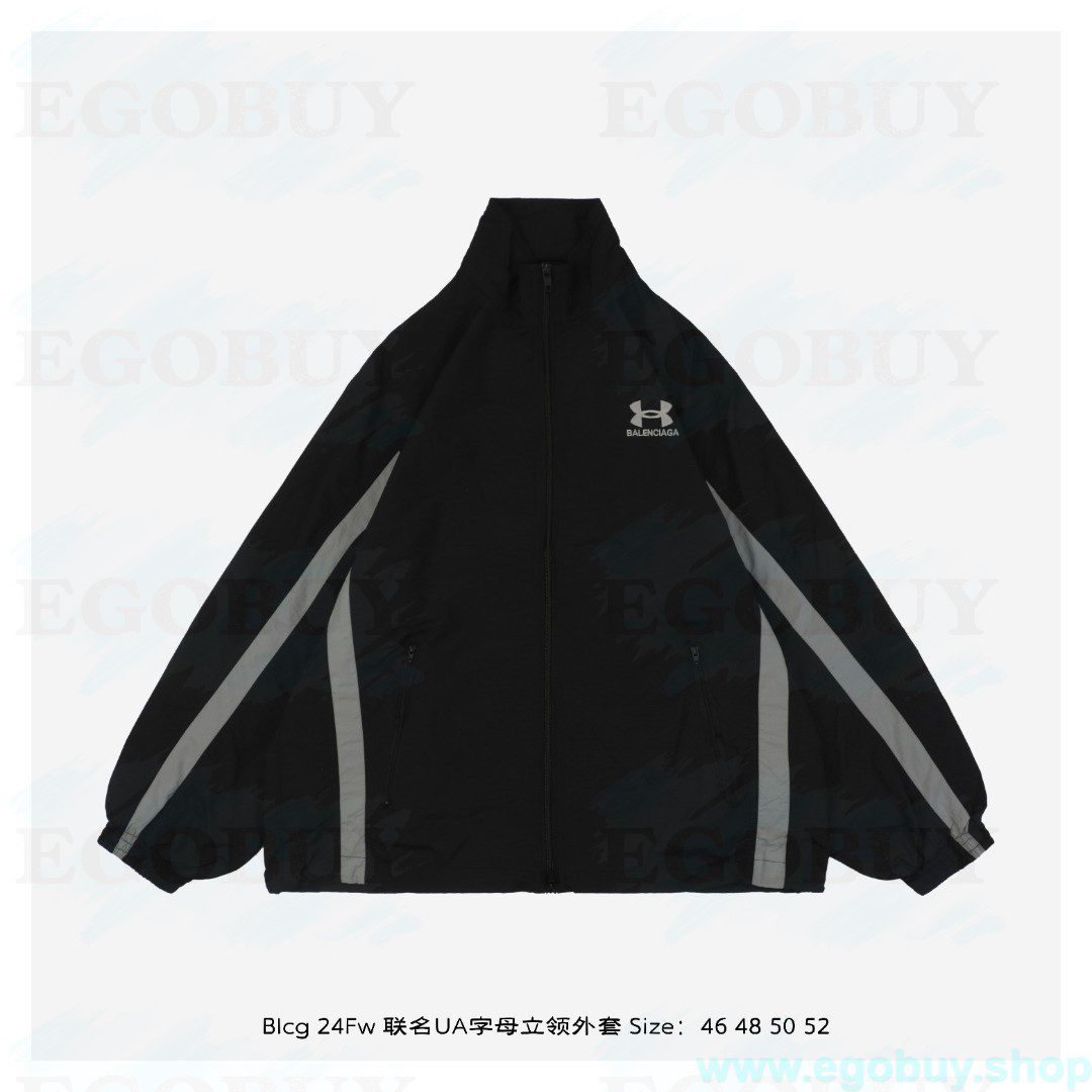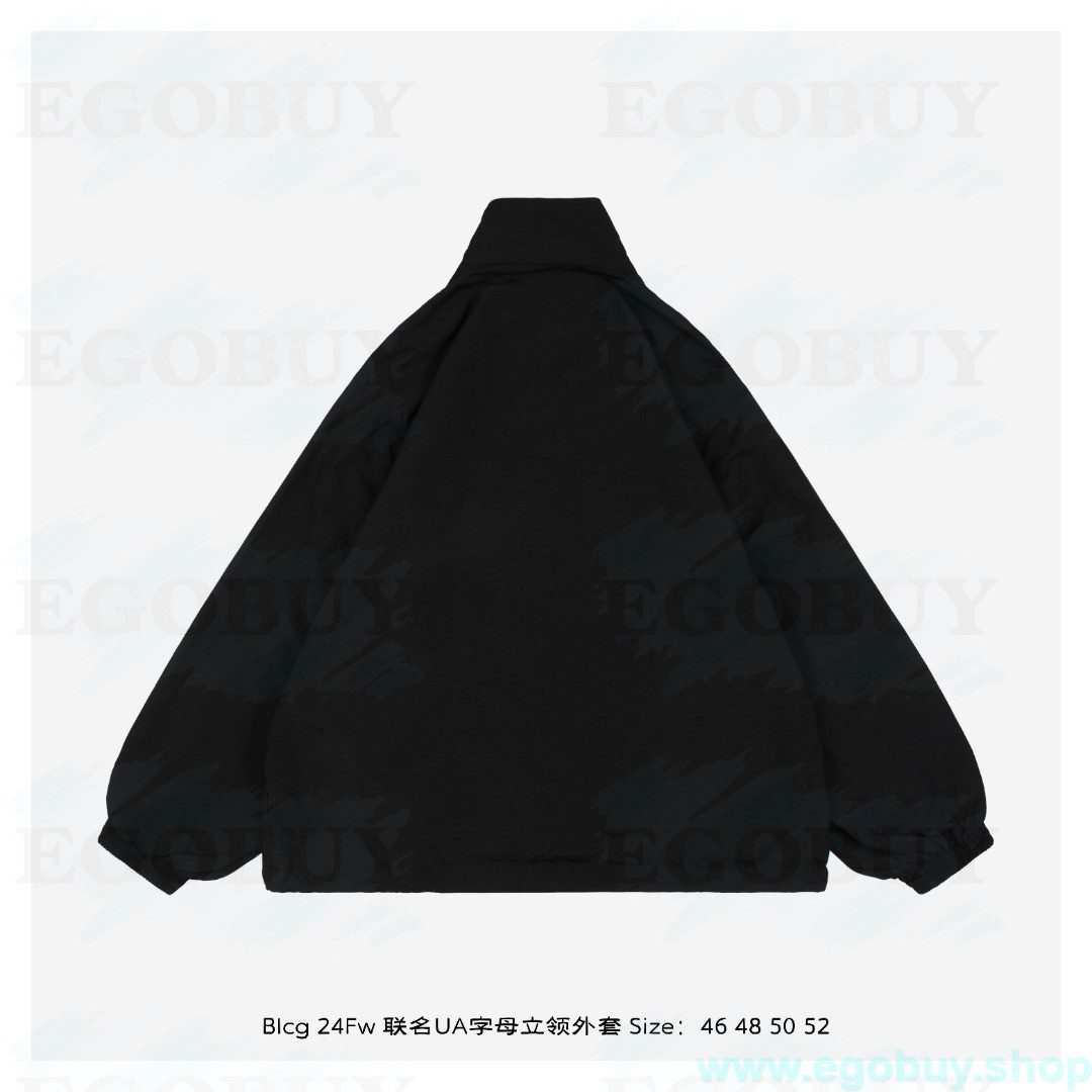 Balenciaga/巴黎世家 24Fw 联名UA字母立领外套 采用定制消光塔丝隆专业面料,加施三防涂层工艺,特氟龙防污处理,抗油渍易清洁,聚酯高密鸟眼网布衬里,立体循环透气结构,快速导出湿气,防静电处理,秋冬季穿着更舒适,刺绣工艺采用进口绣花机重工刺绣,立体饱满且有型,本衣服采用成衣水洗工艺,确保与原版一致柔软程度,定制五金拉链双拉头LOGO,定制辅料三标