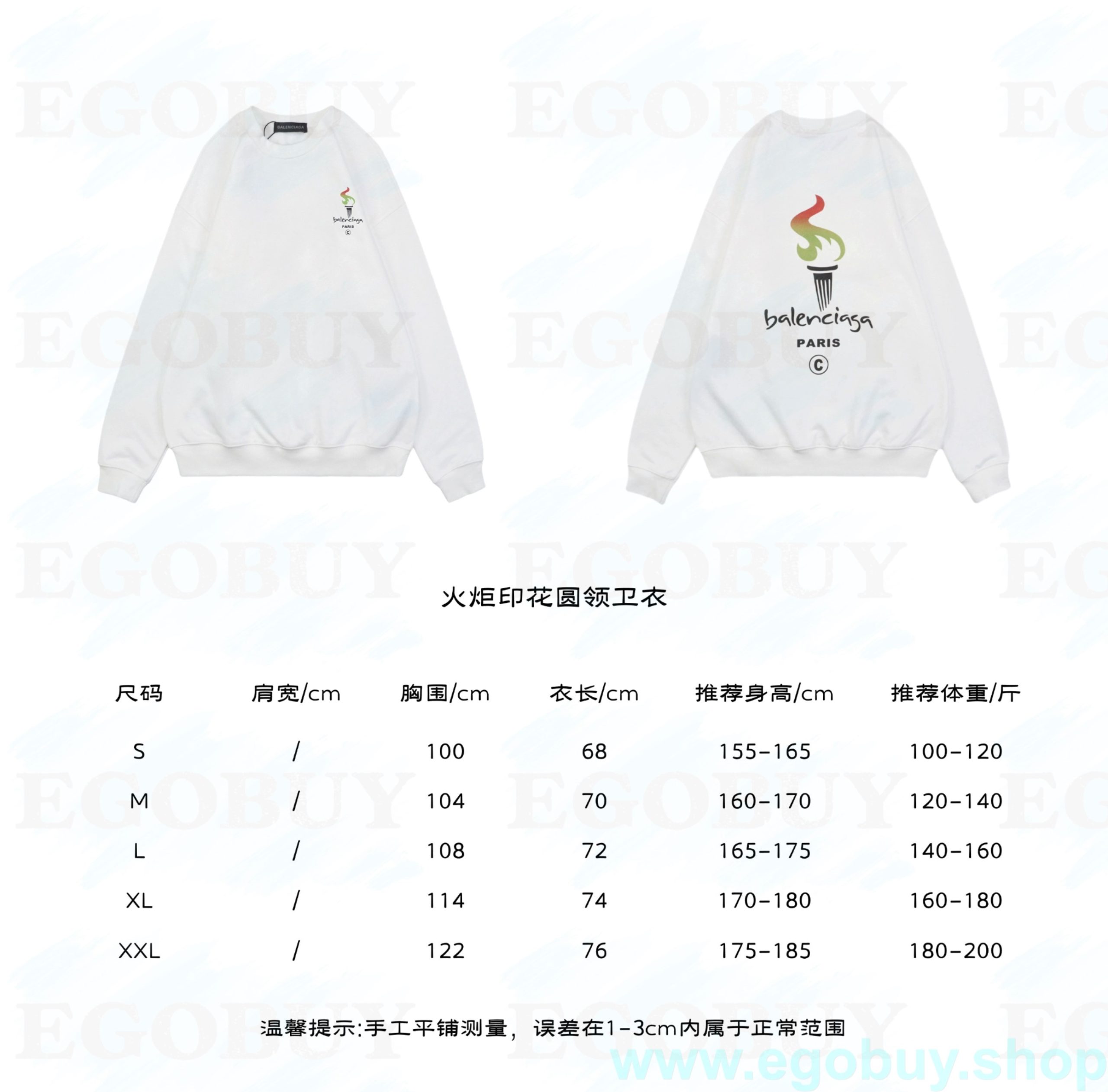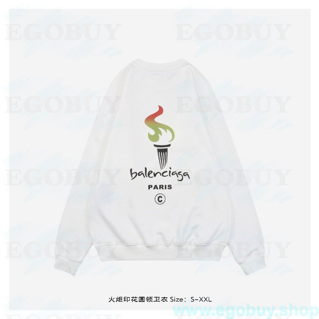 Balenciaga/巴黎世家 24Fw 火炬印花圆领卫衣 面料采用400克重双股大毛圈面料,定制32支螺纹,成衣两遍水洗处理,面料舒适亲肤无异感,定制定染面料,纺织密度高,垂感佳,不易变形,厚织感加上紧密纺纱工艺,不会影响卫衣的透气性,成色的饱和度很高,进口数码直喷印花工艺,百搭好看的一款卫衣,宽松版型遮肉显瘦不挑人  Size:S-XXL