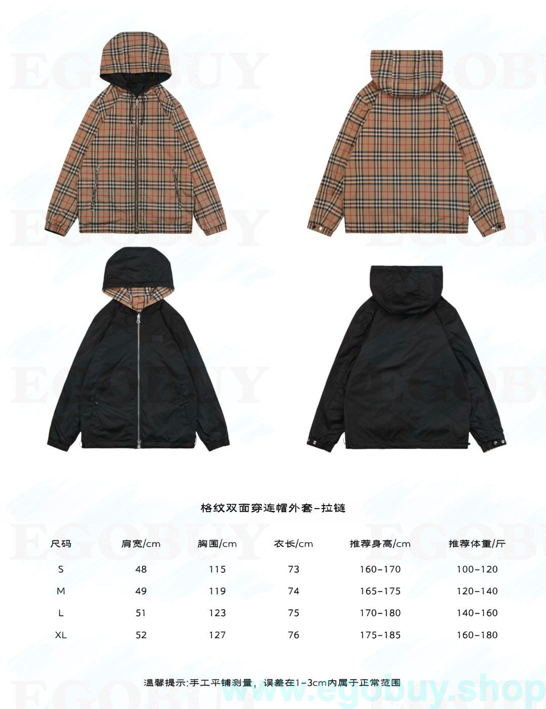 Burberry/博柏利 21Fw 格纹双面穿连帽外套-拉链-正面 采用再生聚酯纤维纱线制成的Vintage复古格纹面料打造, 三层面料,全部格子大小+对位误差不超过1mm,反面采用纯色ECONYL打造,由再生的渔网、织物废料和工业塑料制成的可持续尼龙面料,格纹采用红外线裁剪,对条对格单件裁裁剪激光对位取格,每个独立的尺码都是定位裁片,前幅,口袋,每一处接口条纹位置全部对位处理,前后片+口袋门襟位置处全部对位,工序复制,费时费料,保证每件都一样的位置,所有辅料五金精准开模,辅料串码及英文编码均一致,同步剪裁与设计,领标手缝,工序繁琐,全部手工流水线生产,对版一致,全方位对位对格,工序严谨,相当费时费料,产量精出,不管从面料、厚度还是细节工艺上的考究都是非常用心 Size:S-XL