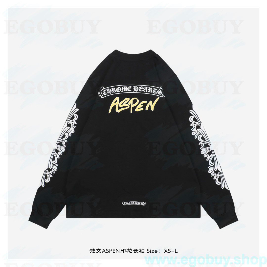 Chrome hearts/克罗心 25Fw 梵文ASPEN印花长袖 面料采用230克重精梳棉,定制32支1*1螺纹,成衣两遍水洗处理,面料舒适亲肤无异感,定制定染面料,纺织密度高,垂感佳,不易变形,厚织感加上紧密纺纱工艺,不会影响面料的透气性,成色的饱和度很高,进口数码直喷印花工艺,百搭好看的一款短袖,宽松版型遮肉显瘦不挑人 Size:XS-L