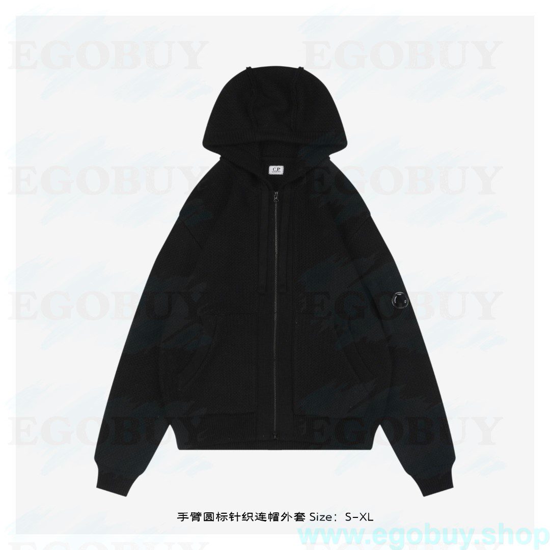 C.P 手臂圆标针织连帽外套 定织定染质感厚实的全棉面料,与原版保持一致,确保上身挺括有型。面料针织纹理细腻,在保证耐久度的同时,带来亲肤舒适的穿着体验,宽松的版型剪裁赋予身体充足的活动空间,巧妙平衡了街头潮流感与日常穿着的舒适度,袖口与下摆采用高弹罗纹布料收口,有效增强保暖性能,并利落轮廓,避免臃肿,左臂处的标志性眼镜图案是这款连帽衫的灵魂设计,在此细节的处理上追求极致还原,此外,连帽设计搭配可调节帽绳,适应不同天气与造型需求,顺滑的拉链开合则让穿脱更为便捷,袖口、下摆采用高弹罗纹收口,增强保暖性与轮廓利落感,定制辅料三标,男女同款 Size:S-XL