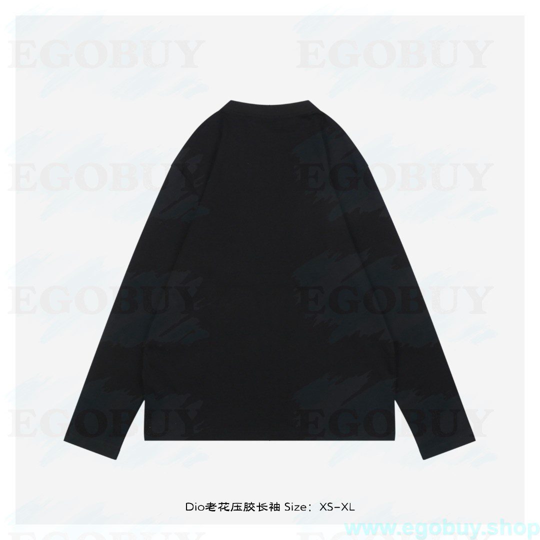 Dior/迪奥 25Fw Dio老花压胶长袖 面料采用260克重精梳棉,定制32支1*1螺纹,成衣两遍水洗处理,面料舒适亲肤无异感,定制定染面料,纺织密度高,垂感佳,不易变形,厚织感加上紧密纺纱工艺,不会影响面料的透气性,成色的饱和度很高,进口数码直喷印花工艺,百搭好看的一款短袖,宽松版型遮肉显瘦不挑人 Size:XS-XL
