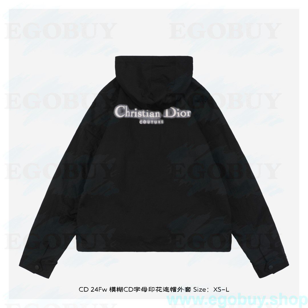 Dior/迪奥 24Fw 模糊CD字母印花连帽外套 采用定制消光塔丝隆专业面料,加施三防涂层工艺,特氟龙防污处理,抗油渍易清洁,聚酯高密鸟眼网布衬里,立体循环透气结构,快速导出湿气,防静电处理,秋冬季穿着更舒适,进口环保胶浆丝网套色印花,定制五金拉链双拉头LOGO,定制辅料三标