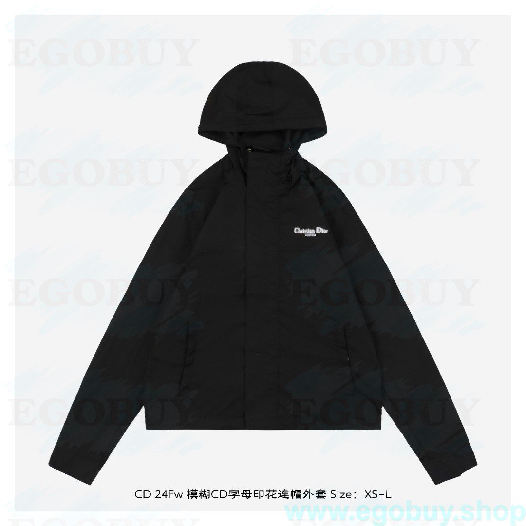 Dior/迪奥 24Fw 模糊CD字母印花连帽外套 采用定制消光塔丝隆专业面料,加施三防涂层工艺,特氟龙防污处理,抗油渍易清洁,聚酯高密鸟眼网布衬里,立体循环透气结构,快速导出湿气,防静电处理,秋冬季穿着更舒适,进口环保胶浆丝网套色印花,定制五金拉链双拉头LOGO,定制辅料三标