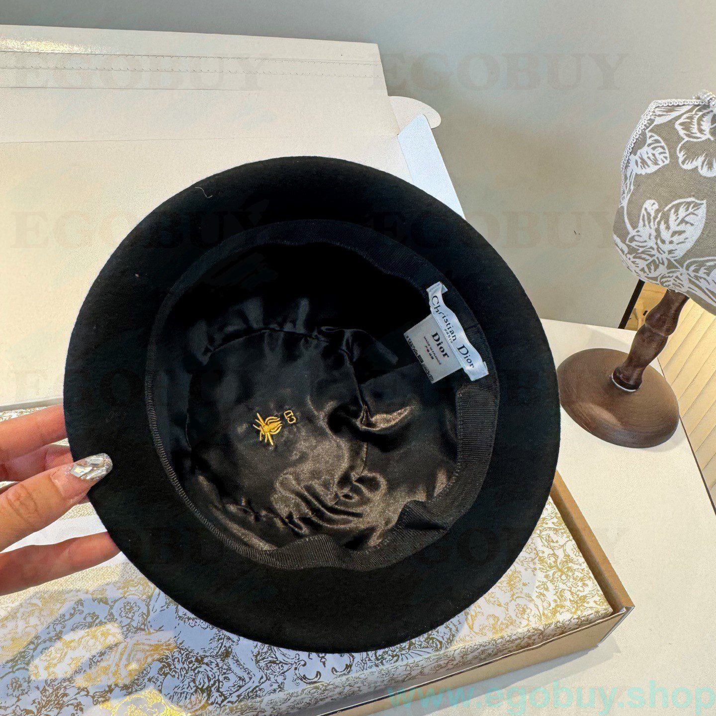 迪奥盆帽 黑色 Dior迪奥 秋冬款羊毛盆帽, 很洋气的款式呦!跟以往不同的风格,这款精致简约 更深得我心❤,不规则帽型 机场秀必备单品! 特别百搭呦!黑 白两色 内里绸缎真丝面料,带刺绣logo