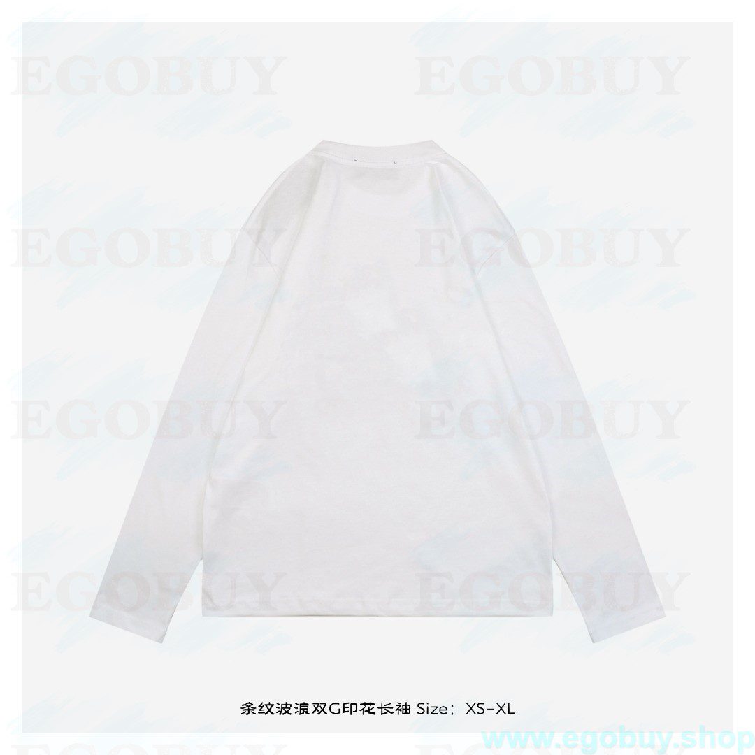 Gucci/古驰 25Fw 条纹波浪双G印花长袖 面料采用260克重精梳棉,定制32支1*1螺纹,成衣两遍水洗处理,面料舒适亲肤无异感,定制定染面料,纺织密度高,垂感佳,不易变形,厚织感加上紧密纺纱工艺,不会影响面料的透气性,成色的饱和度很高,进口数码直喷印花工艺,百搭好看的一款短袖,宽松版型遮肉显瘦不挑人