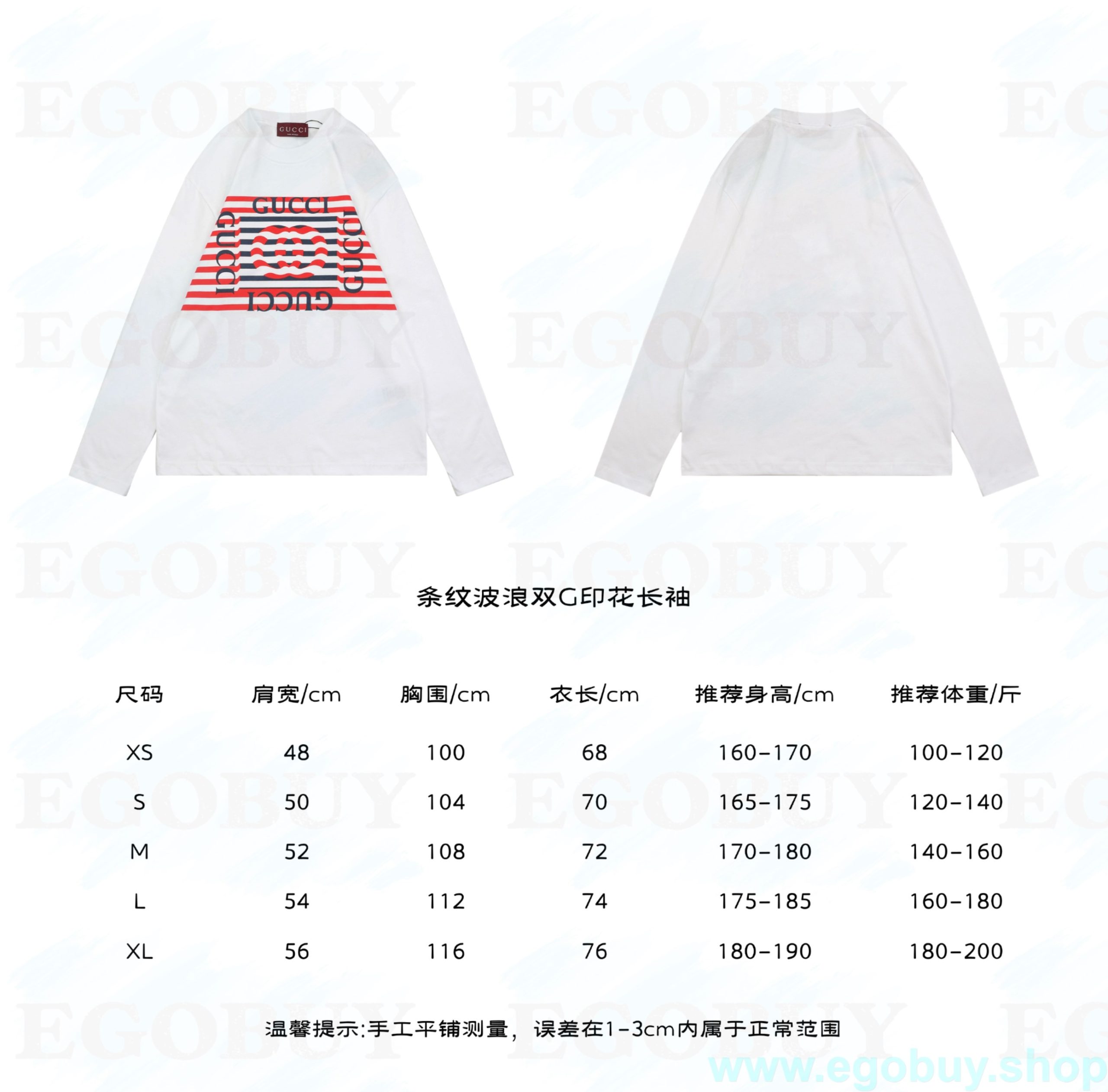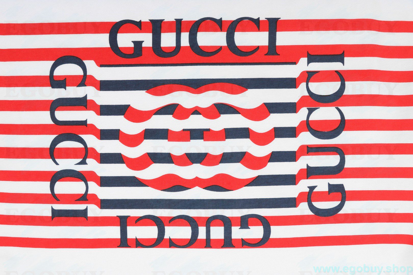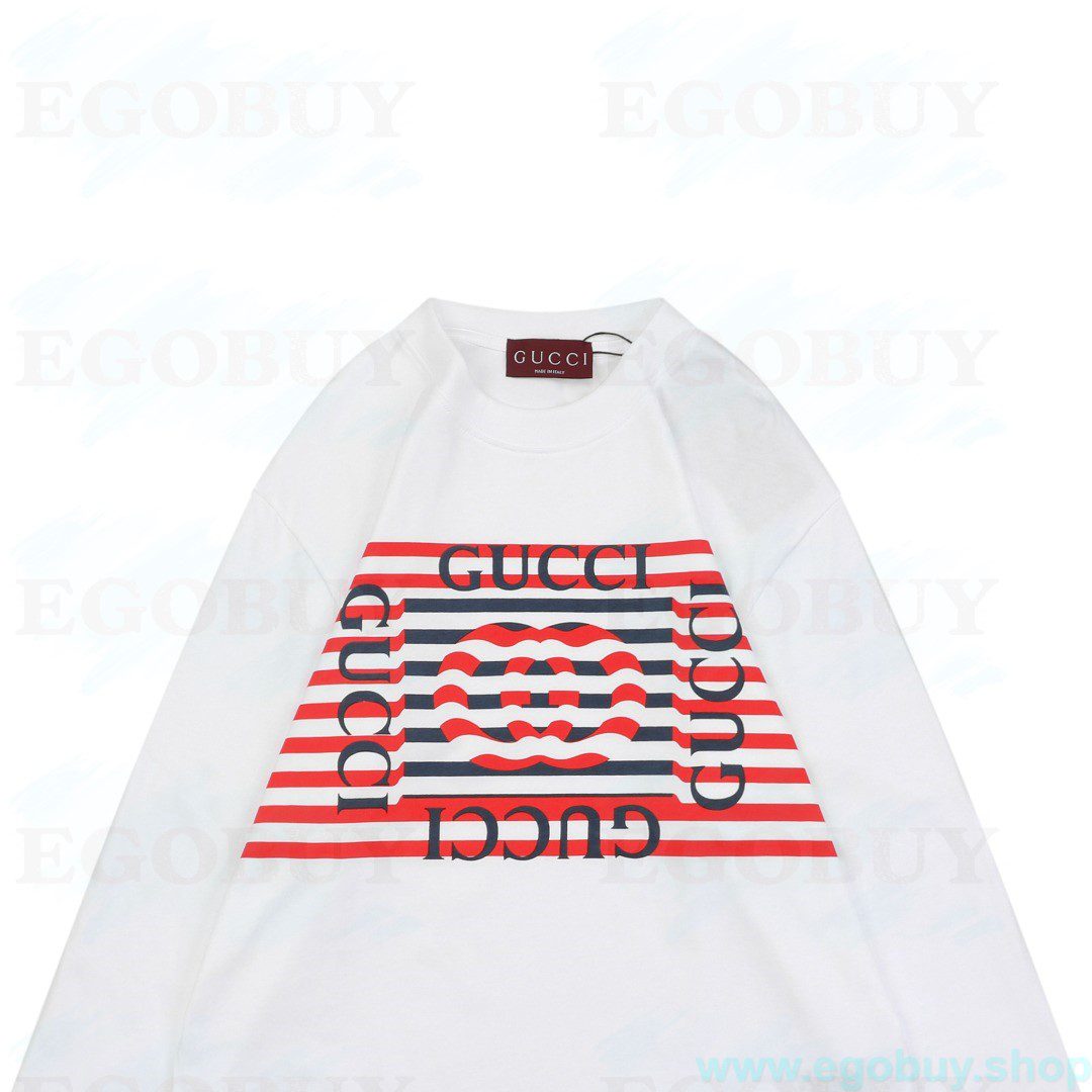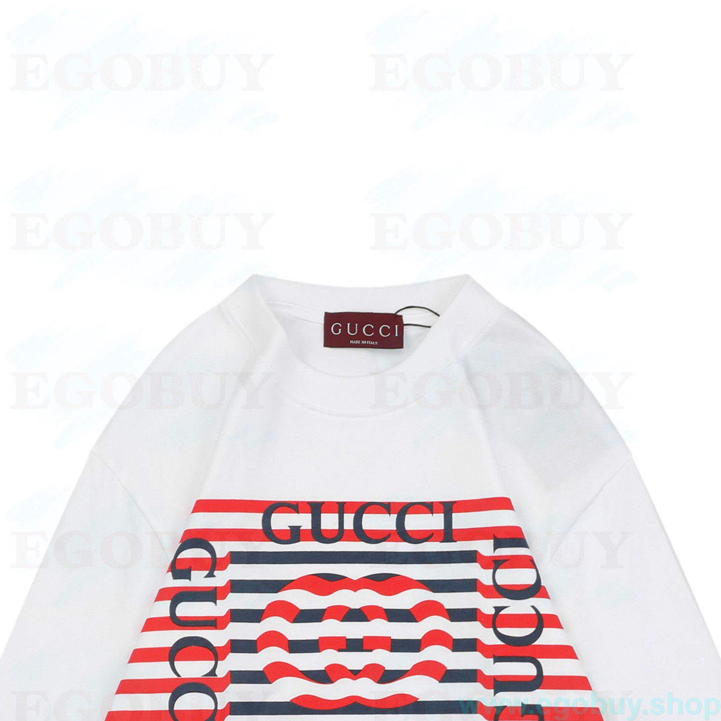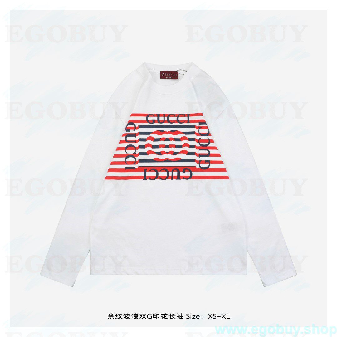 Gucci/古驰 25Fw 条纹波浪双G印花长袖 面料采用260克重精梳棉,定制32支1*1螺纹,成衣两遍水洗处理,面料舒适亲肤无异感,定制定染面料,纺织密度高,垂感佳,不易变形,厚织感加上紧密纺纱工艺,不会影响面料的透气性,成色的饱和度很高,进口数码直喷印花工艺,百搭好看的一款短袖,宽松版型遮肉显瘦不挑人