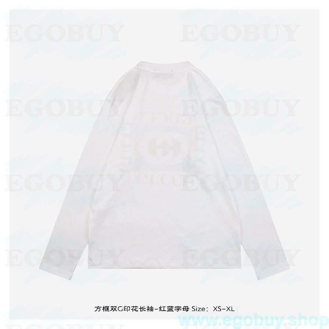 Gucci/古驰 25Fw 方框双G印花长袖-红蓝字母 面料采用260克重精梳棉,定制32支1*1螺纹,成衣两遍水洗处理,面料舒适亲肤无异感,定制定染面料,纺织密度高,垂感佳,不易变形,厚织感加上紧密纺纱工艺,不会影响面料的透气性,成色的饱和度很高,进口数码直喷印花工艺,百搭好看的一款短袖,宽松版型遮肉显瘦不挑人 Size:XS-XL