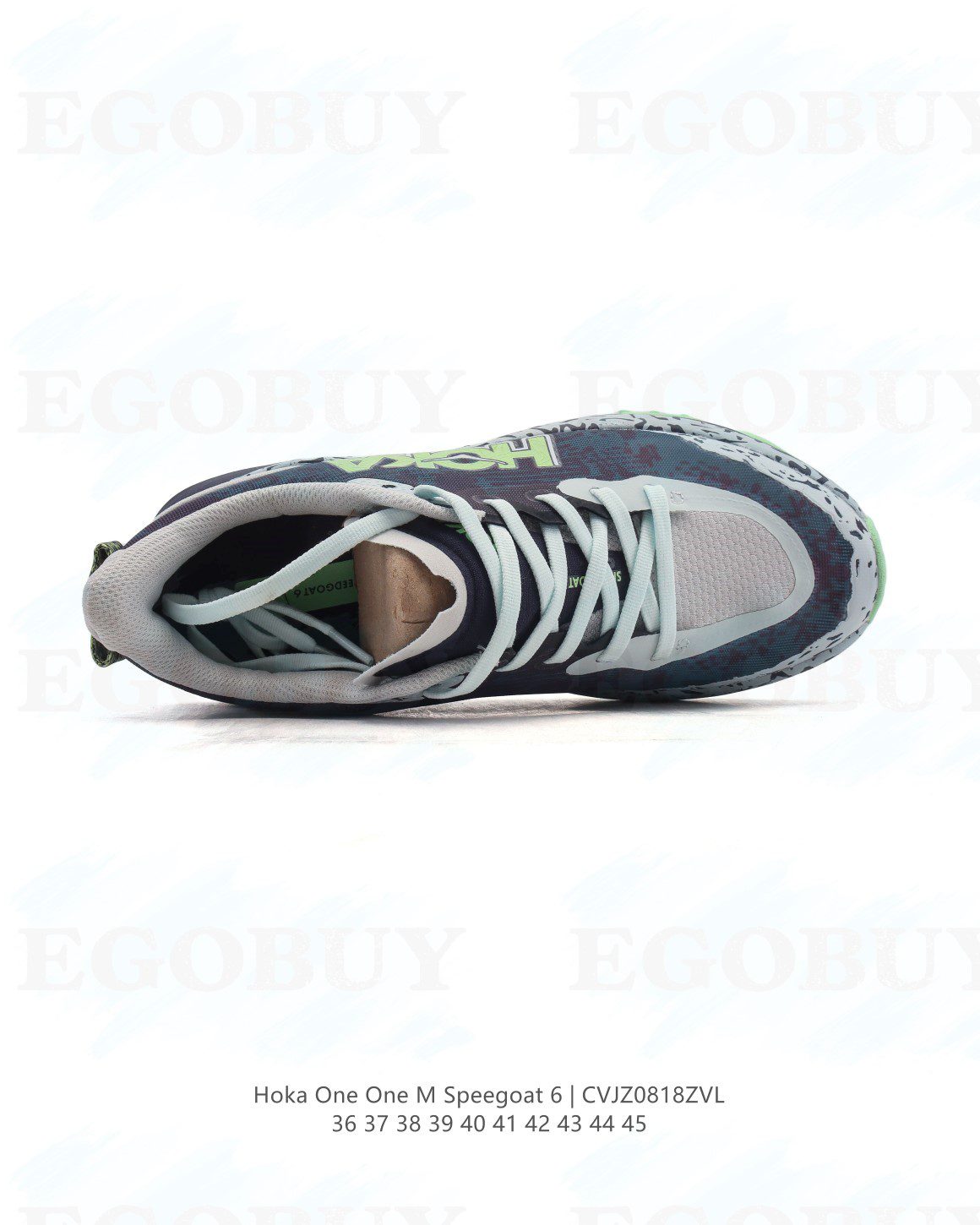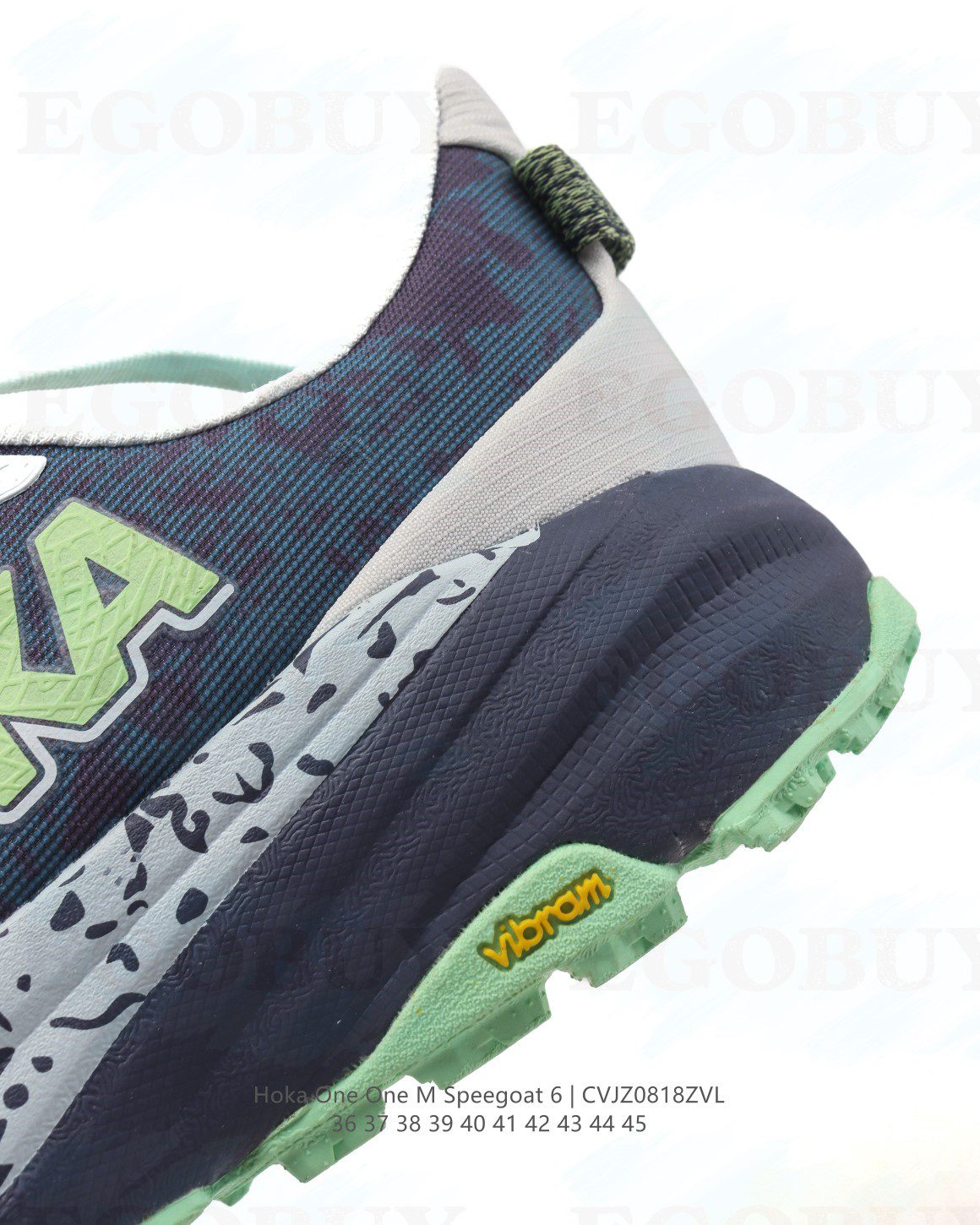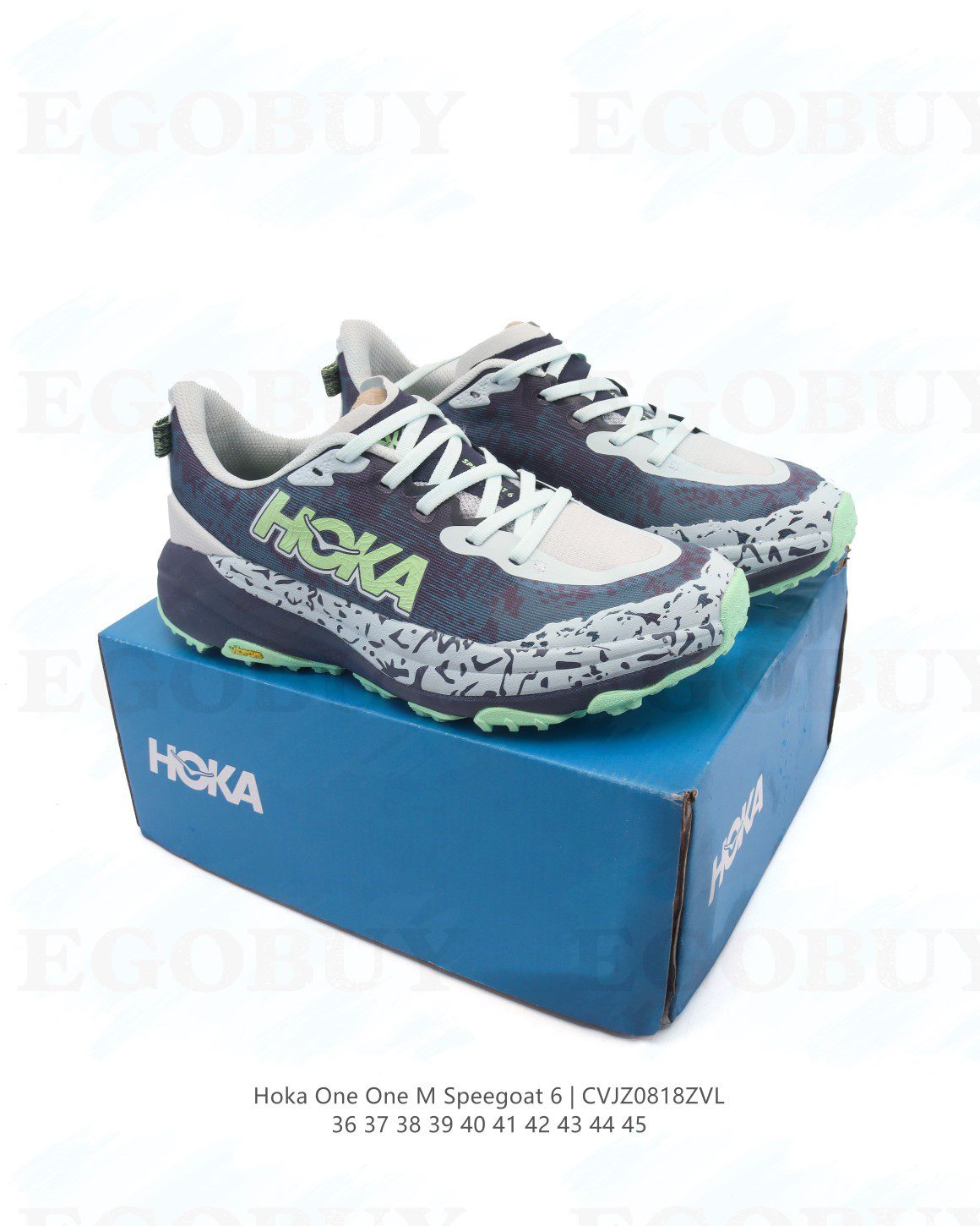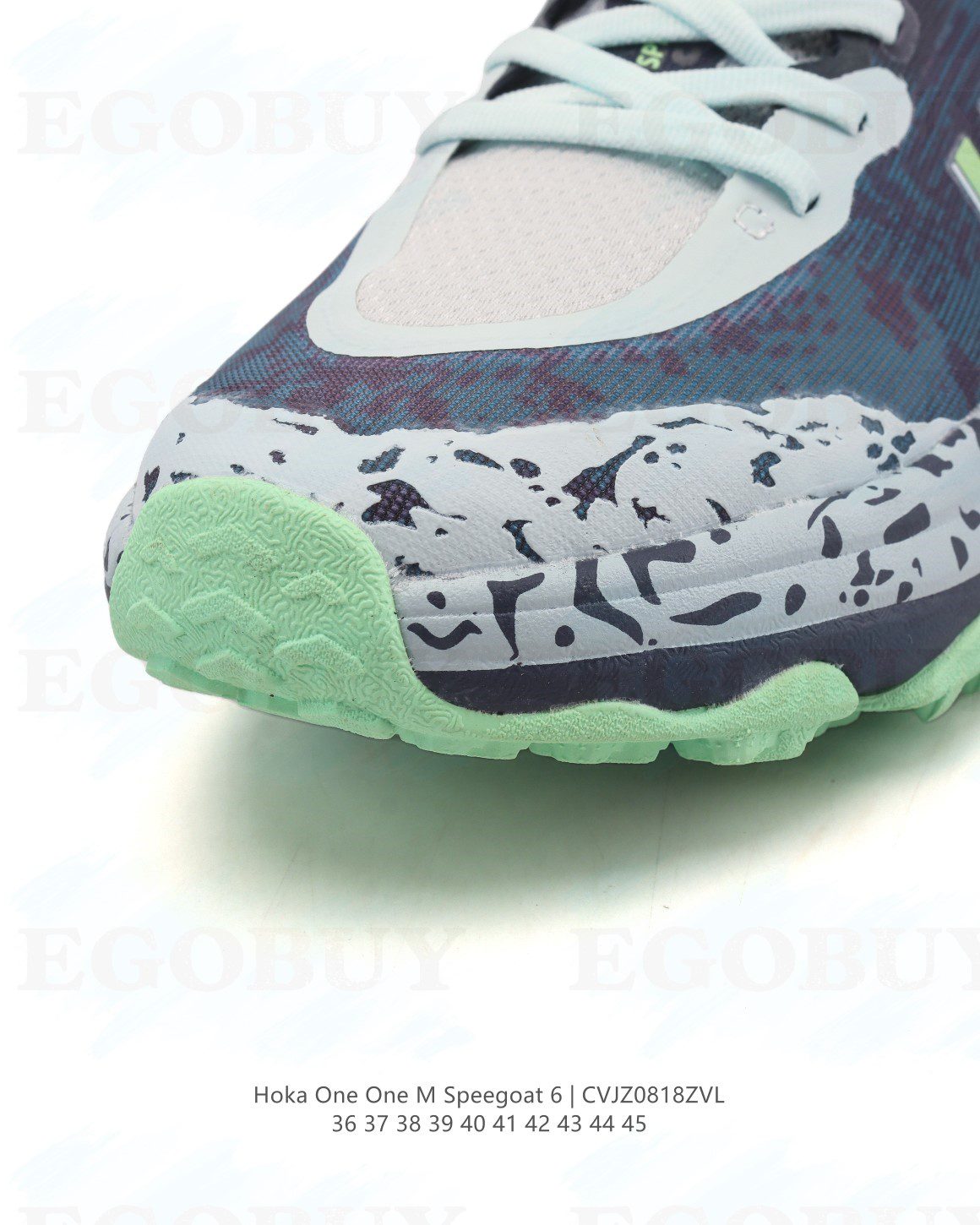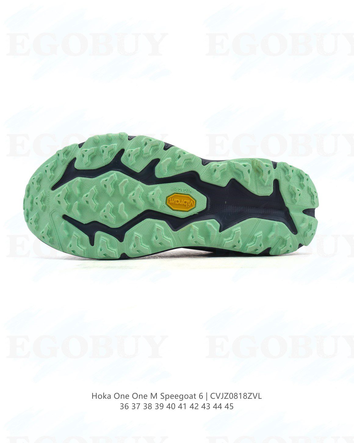HOKA ONE ONE SpeedGoat 6(飞速羚羊6)飞速羚羊系列的第六代越野跑鞋男女士运动鞋,鞋款采用动态鞋面与内部支撑系统,并搭载HOKA久经考验的缓震性能和拥有超强抓地力的大底,为跑者提供轻盈舒适的脚感,帮助他们轻松飞越磨合期。无论是应对日常训练还是奔赴越野比赛,这双SPEEDGOAT 6都能成为越野爱好者们的理想之选。与此同时,SG6延续了该系列轻量化设计的核心理念,搭载CMEVA缓震中底,使之成为迄今为止重量更轻、响应更迅速的飞速羚羊鞋款。鞋款所搭载的VIBRAM® MEGAGRIP大底采用鲨齿技术,为跑者提供强大的抓地力,无论在潮湿还是干燥的路面上,都能自如应对。受到羊蹄柔韧特性的启发,SG6采用了5毫米的足底凸耳设计,在有效防滑和贴合路面的同时,使足部转向更加灵敏。这些由VIBRAM®科技带来的性能提升,赋予SPEEDGOAT 6十足的底气,只为帮助跑者从容驾驭各种越野路况。