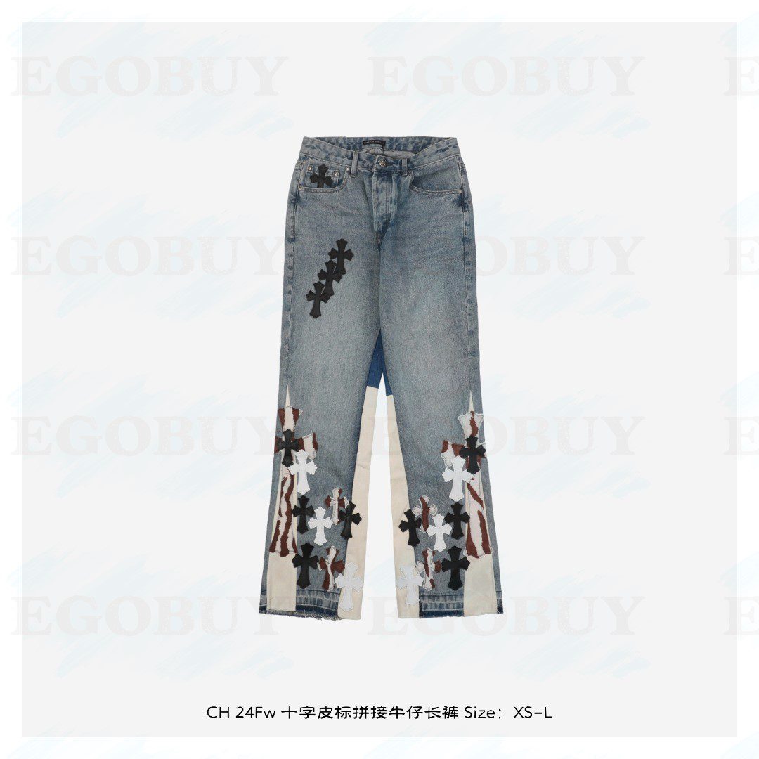 Chrome Hearts/克罗心 24Fw 十字皮标拼接牛仔长裤