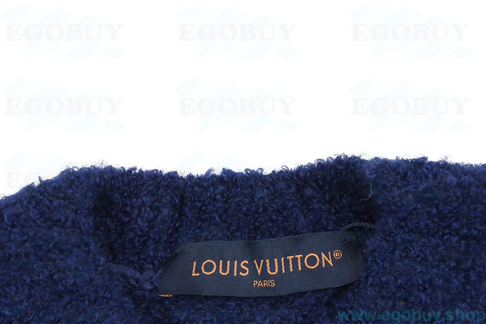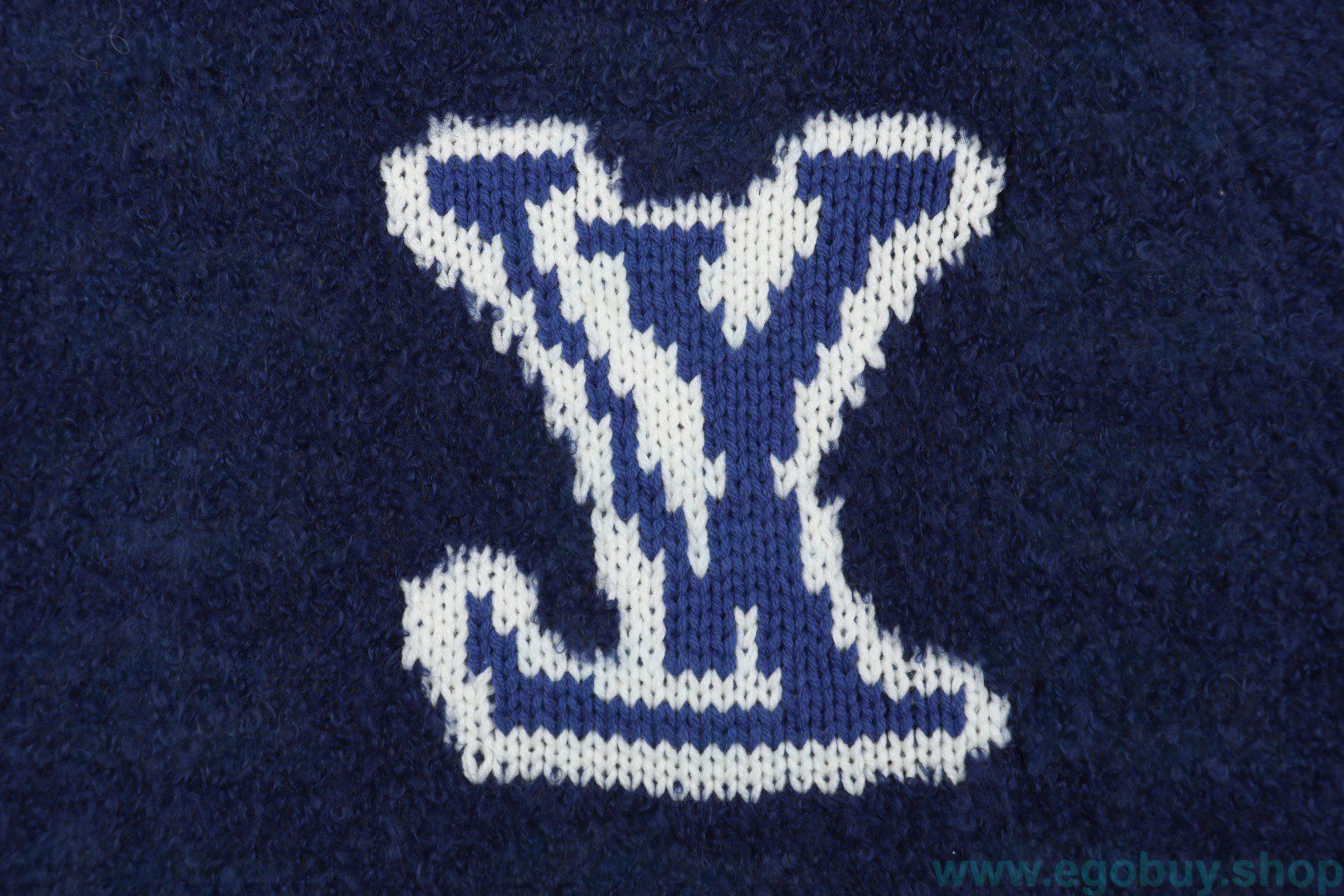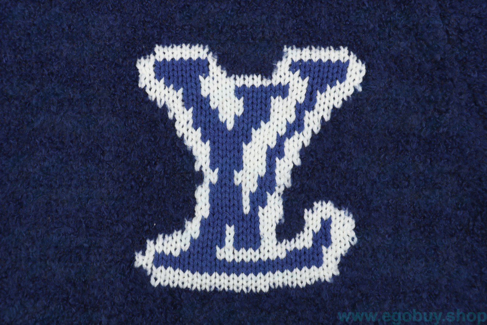 LOUIS VUITTON/路易威登 LV 23Fw 大老花字母提花圆领毛衣-深蓝色 特种圈圈纱弹性大做到版型完美还原,成衣布面类似泰迪熊的毛感,前后打色3次,羊毛混纺材质,真实含量,正3针电脑提花工艺,5针手工缝盘,前后Logo提花是羊毛,且做到完美难度巨大,下摆领口袖口全部加20/70高弹丝,不会变形,定制辅料三标,男女同款 Size:S-L