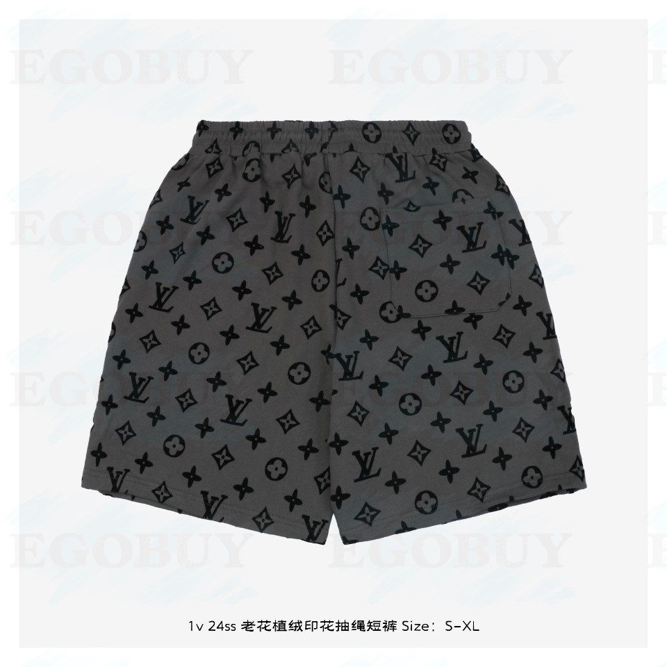 LV 路易威登 24ss 老花植绒印花抽绳短裤 严禁机洗,只能手洗,花型处采用进口绒才能体现出原板的绒高和密度,运用进口环保超强胶水粘贴,保证洗水不掉绒。整件衣服经红外线对位裁剪,保证每处部位均对花,本款请一定手洗,严禁机洗,务必注意 Size:S-XL