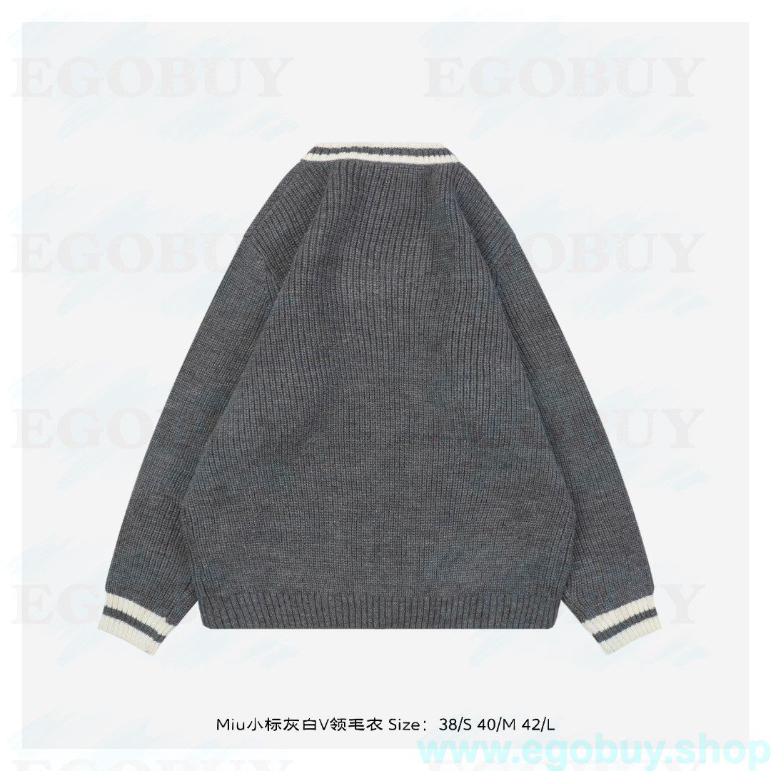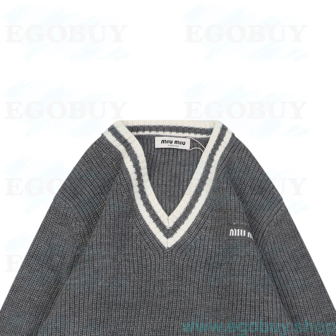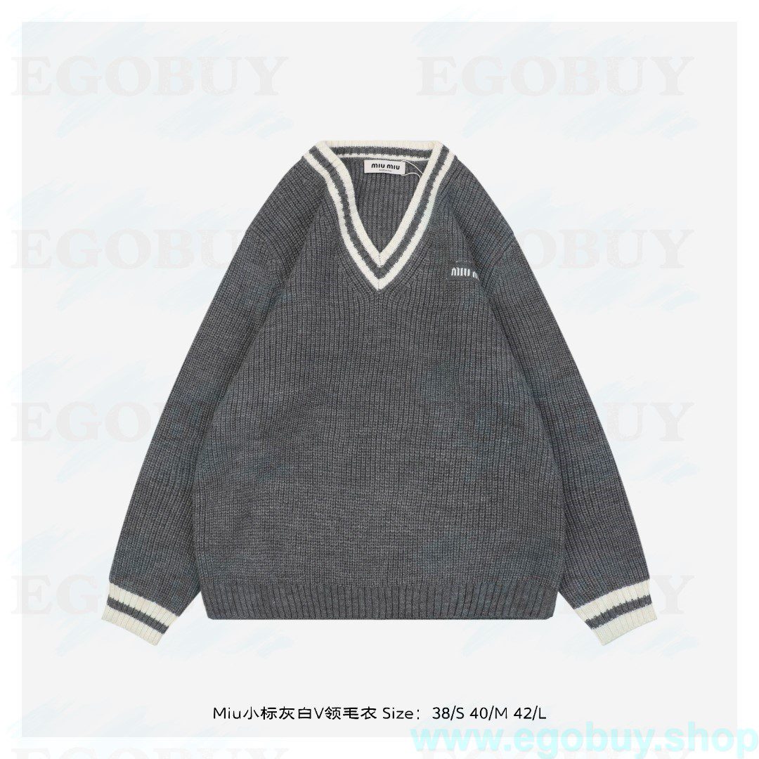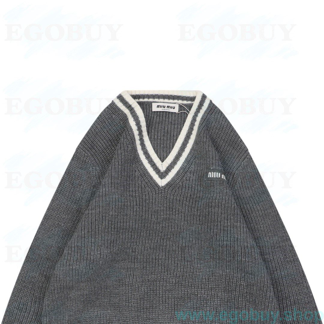 Miu Miu 25Fw Miu小标灰白V领毛衣