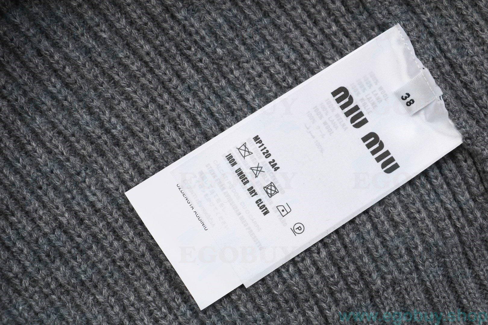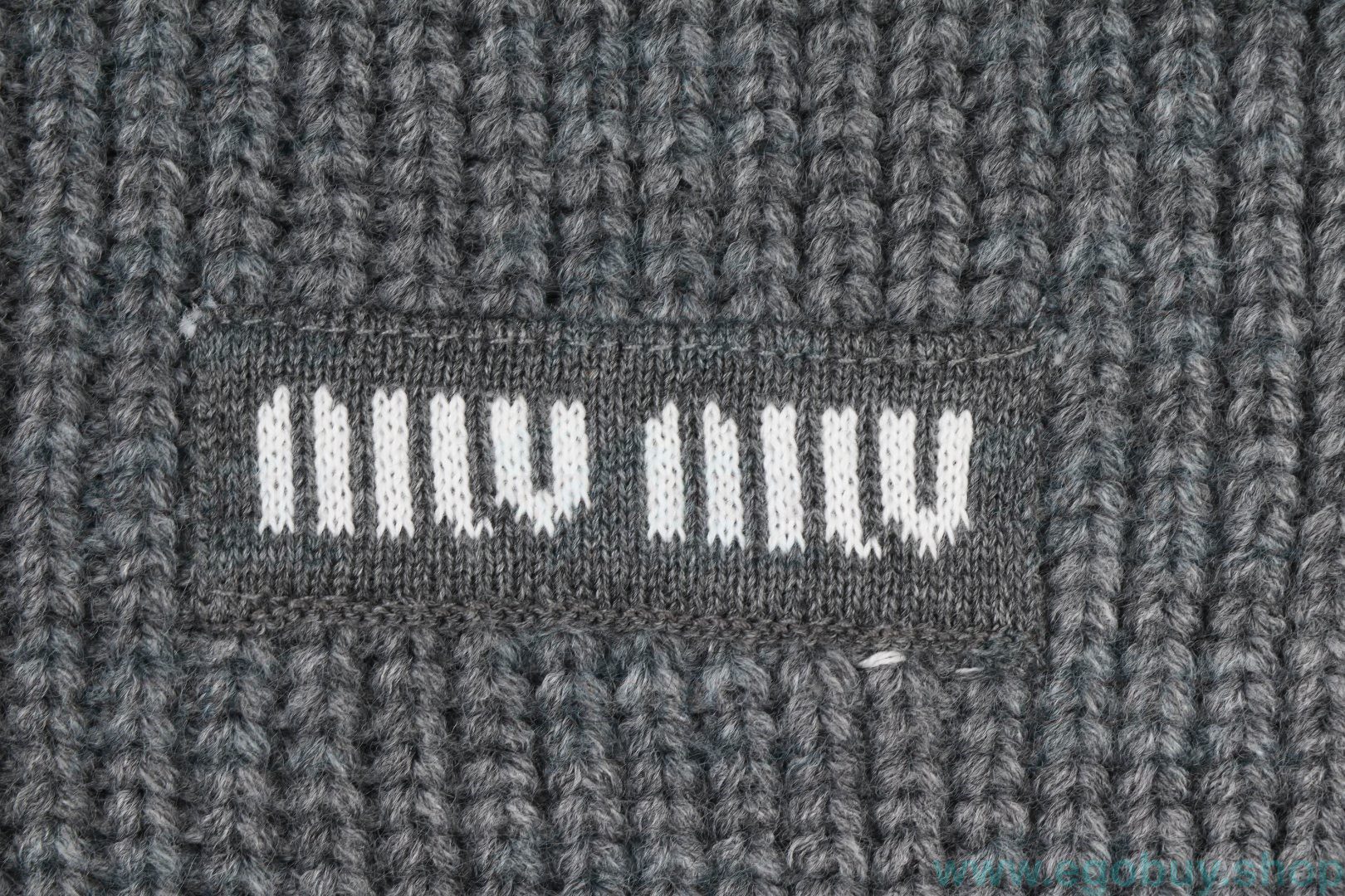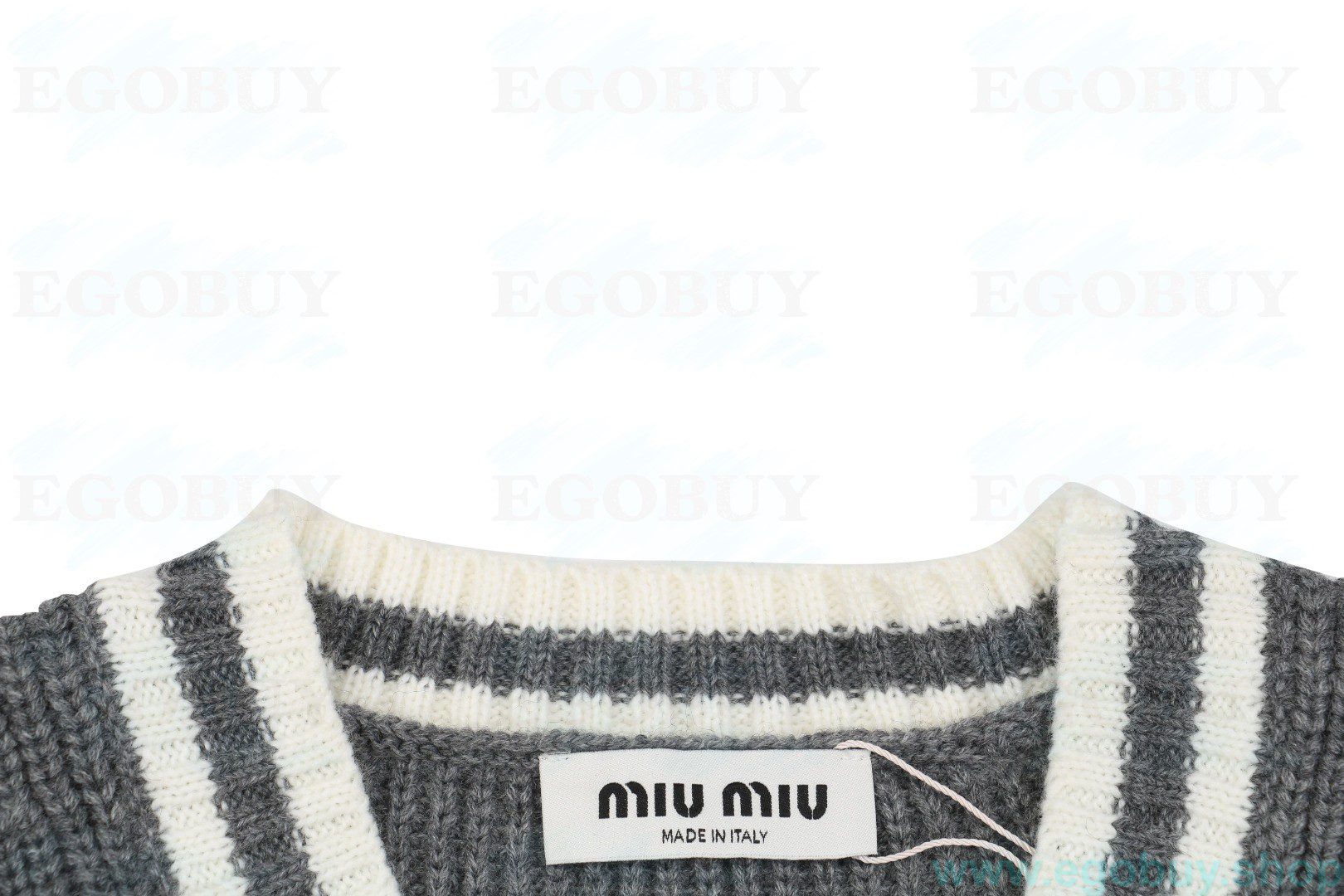 Miu Miu 25Fw Miu小标灰白V领毛衣