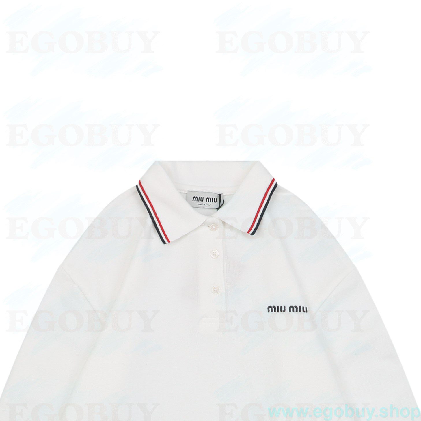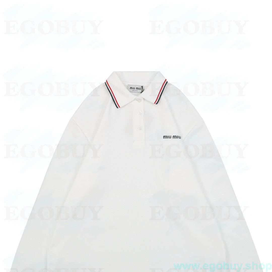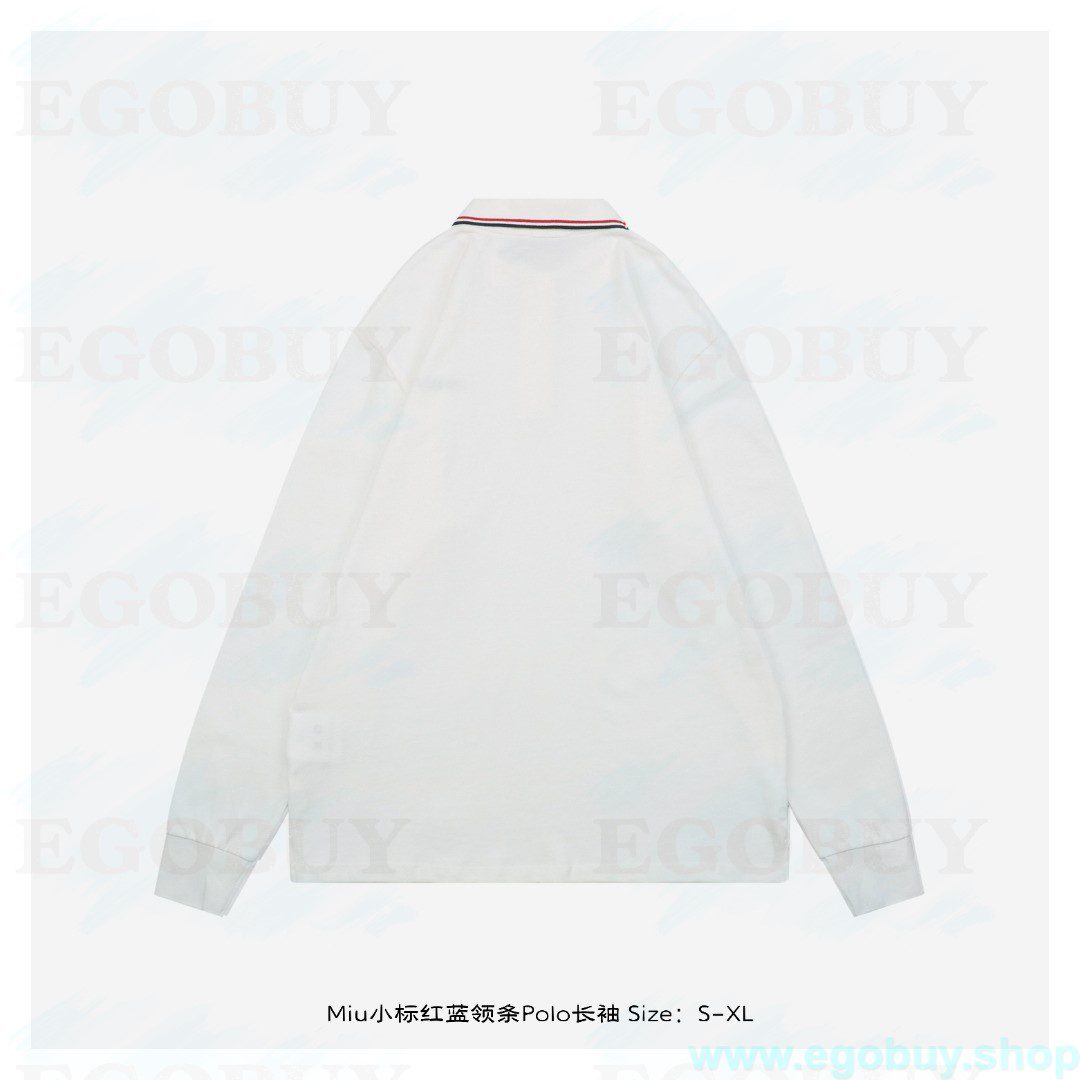 Miu Miu 25Fw Miu小标红蓝领条Polo长袖