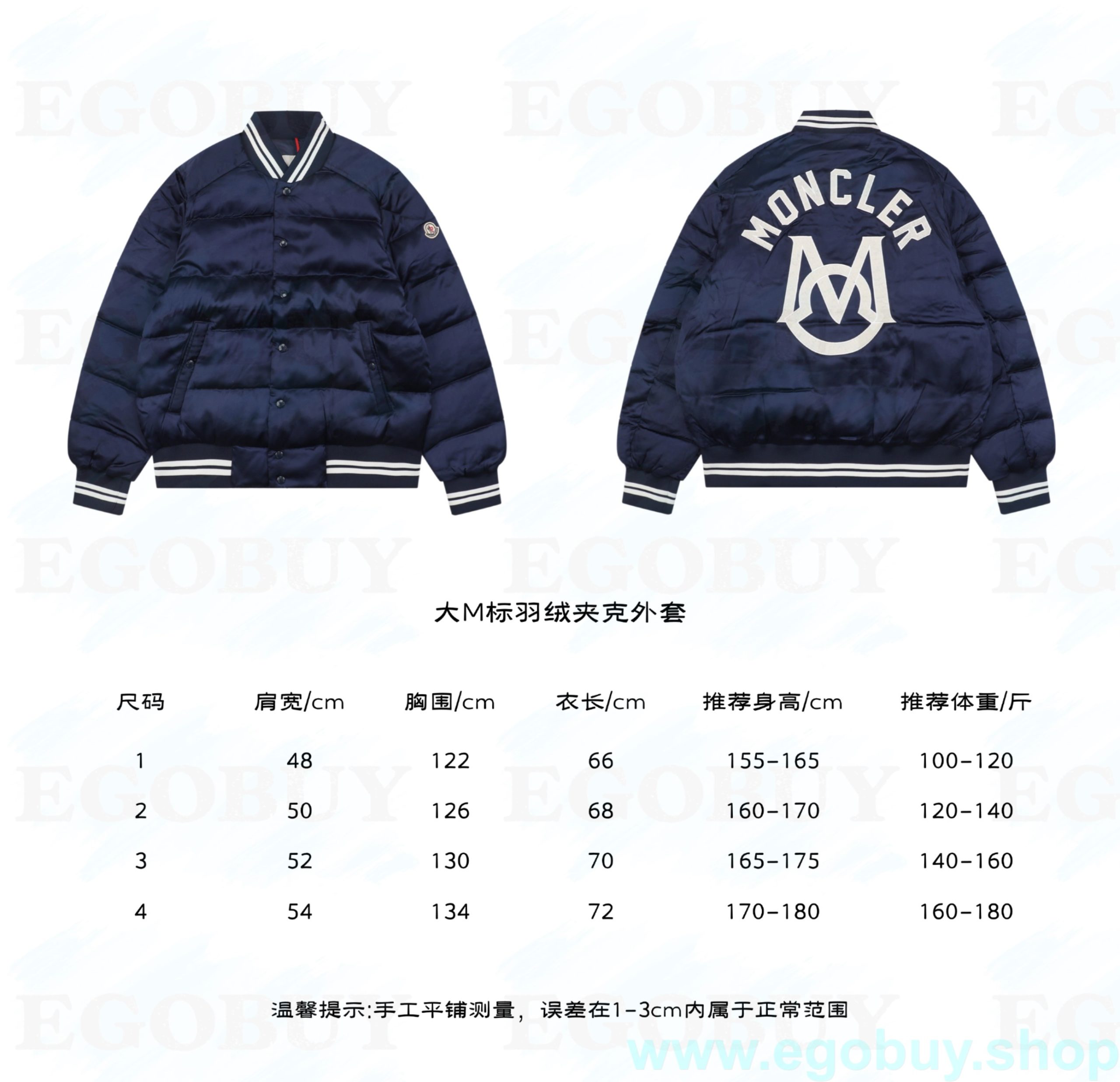 Moncler/蒙口 23Fw 大M标羽绒夹克外套 学院复古风棒球服夹克,时尚有型,缎面尼龙材质, 经过多次褪色处理后没有普通绸缎的颜色光艳度,整体偏暗色系的搭配既有绸缎的光泽,又有美拉德色系独有的风格,整件衣服飞行夹克设计风格,搭配羽绒填充物的设计,是23年冬季最大的亮点,里布采用50D双面压光尼龙透气布料,全件衣服填充物为新国标80白鸭绒,整件充绒量为280克,大格子的充绒效果搭配白鸭绒的填充,简直就是秋冬的保暖神器,定制浪费三标,男女同款 Size:1 2 3 4