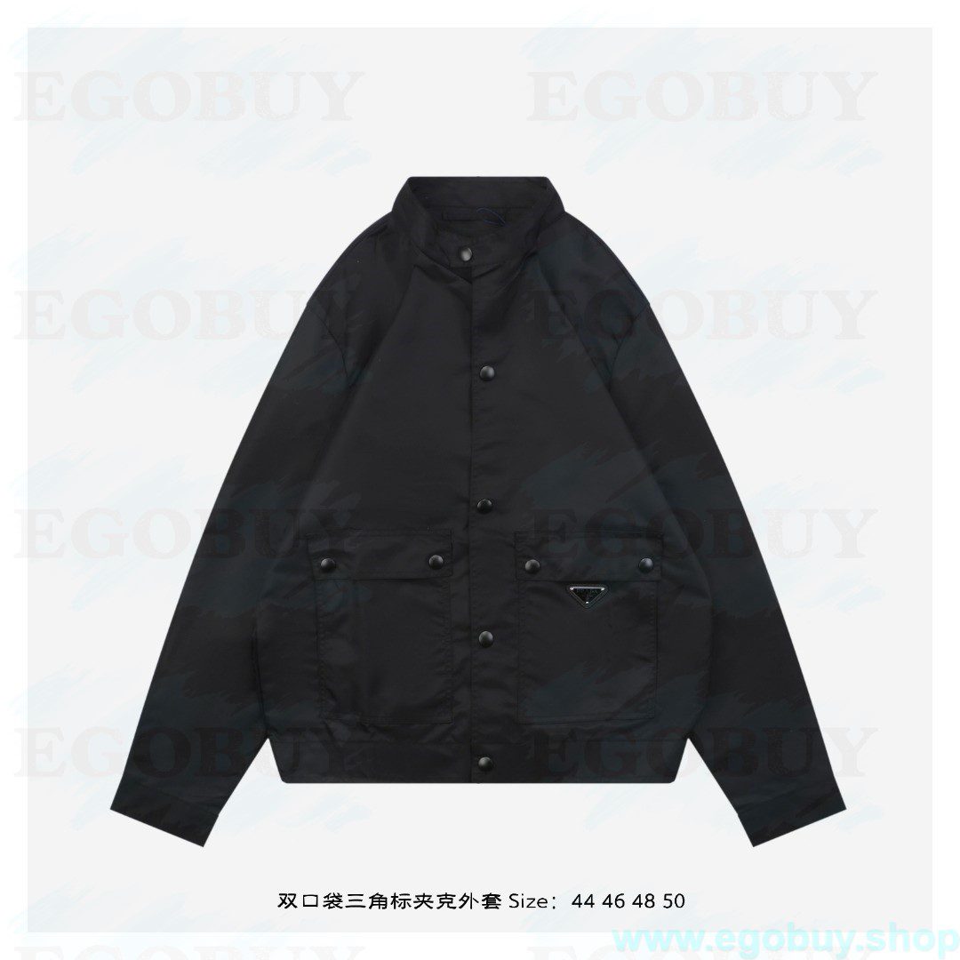 Prada/普拉达 25Fw 双口袋三角标夹克外套 面料为特殊定制的高密度再生尼龙,并非市场普通现货,其密度、手感与防泼水性能均对标原版,力求还原Re-Nylon材质的轻盈质感与耐磨特性,原版面料重量精密控制在600-800克之间(视款式而定),本品同样追求这种轻盈与挺括的平衡。所有五金件(包括拉链、扣具等)均源自东莞专业的箱包五金供应商,绝非普通市场通货,五金质感顺滑,经久耐用,拉链头顺滑度优异,减少卡顿感,与原版追求的耐用性一脉相承。胸前标志性的涂珐琅三角形金属徽标,采用的是与原厂(Prada供应商)一致的KF镜面三角标。此徽标由价值千万元的专用机器制作,呈现出镜面效果与清晰字体,细节精度远超市场仿品。原版徽标同样注重质感,其珐琅涂层通过盐雾测试,长期使用不易氧化。三标与洗标均为按原版材质定制,手感与材质均力求一致,确保细节处的正宗感。原版夹克在缝线工艺上采用双层缝线,拼接处使用隐藏式针脚,以提升耐用性和美观性,男女同款 Size:46 48 50 52
