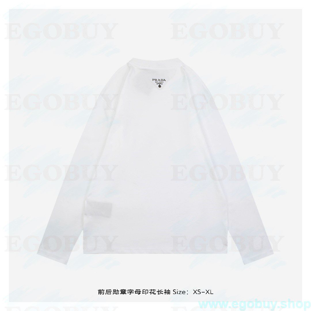Prada/普拉达 25Fw 前后勋章字母印花长袖 面料采用260克重精梳棉,定制32支1*1螺纹,成衣两遍水洗处理,面料舒适亲肤无异感,定制定染面料,纺织密度高,垂感佳,不易变形,厚织感加上紧密纺纱工艺,不会影响面料的透气性,成色的饱和度很高,进口数码直喷印花工艺,百搭好看的一款短袖,宽松版型遮肉显瘦不挑人
