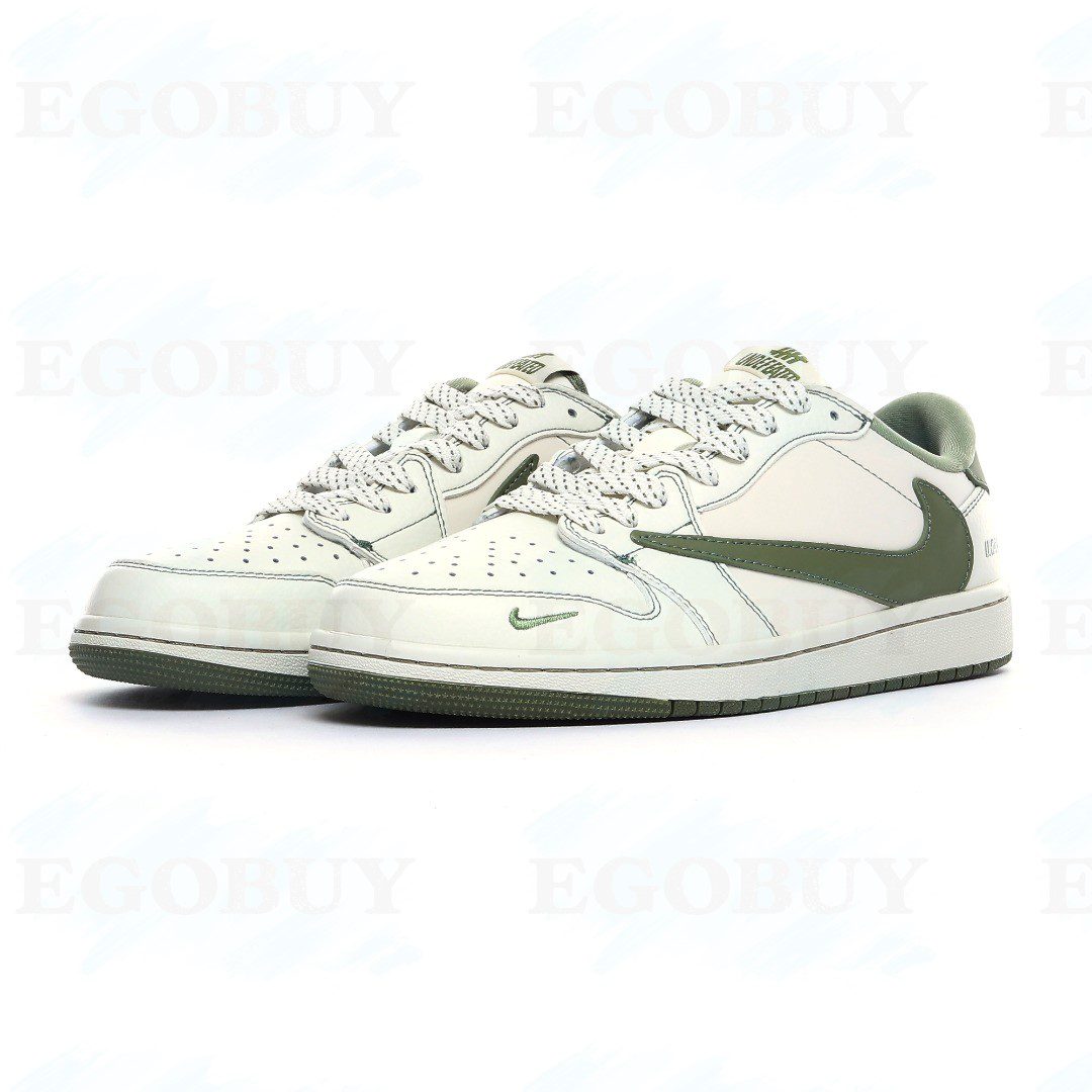 Travis Scott x Fragment Design x Jordan Air Jordan 1 Low OG SP “UN联名——米白绿勾” 多方联名合作融合了Travis Scott 独特的音乐风格,藤原浩个性的设计风格以及Jordan品牌的经典元素 使其成为一双具有独特身份和价值的鞋子 清新而立体的外观加上联名标识更突出了其独特身份 这种配色方案显示出活力和时尚感 在视觉上引人注目 鞋身的质感和细腻的细节处理使其显得高端而格调十足 这款“倒钩”联名是设计与创意完美结合 融合多方的个性风格是一款备受瞩目的潮流鞋款 低帮休闲板鞋 定制鞋盒 大厂纯原品质出货 超高清洁度 皮料切割干净无任何毛边 细节完美