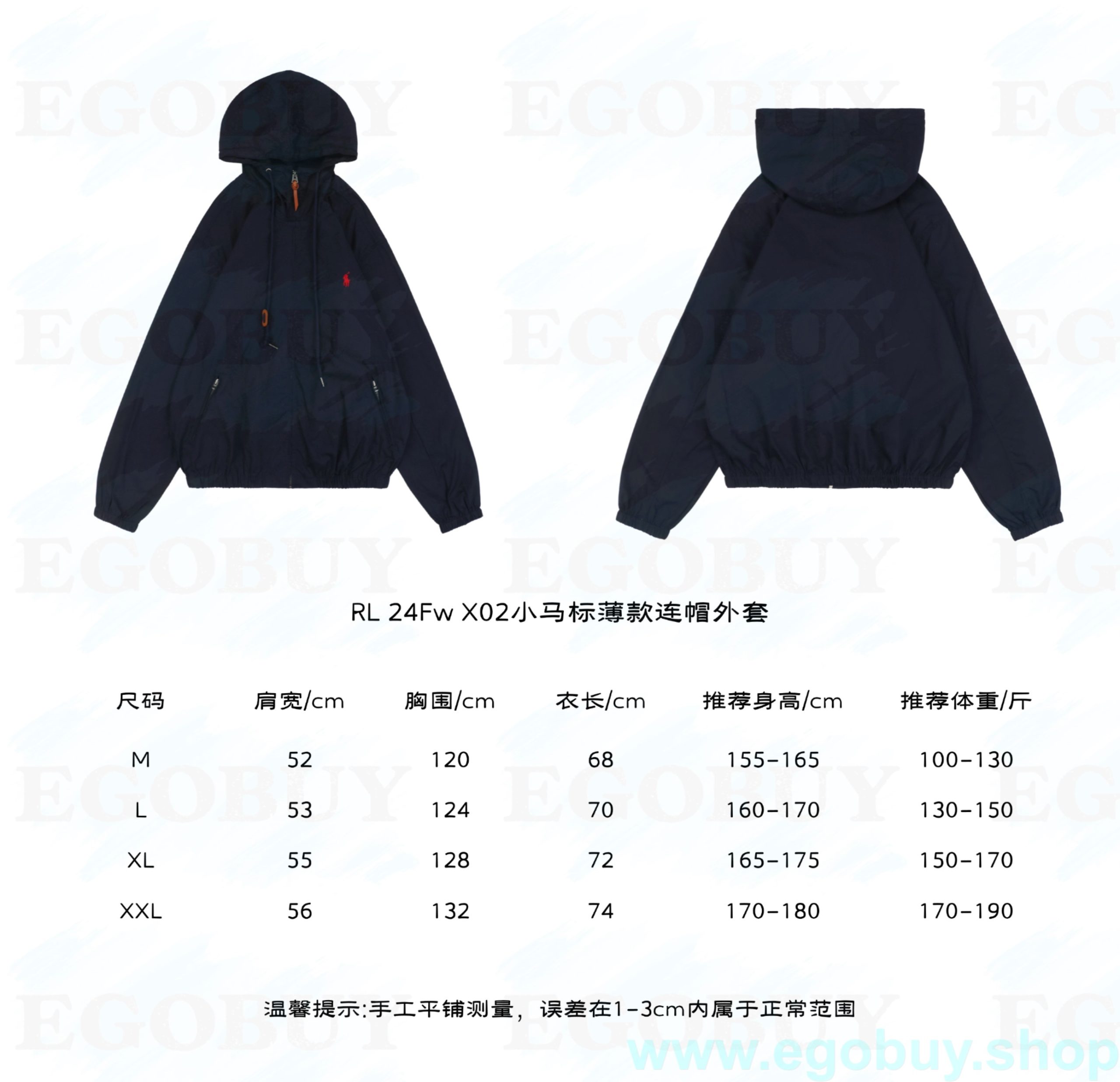 Ralph Lauren/拉夫劳伦 24Fw X02小马标薄款连帽外套 经典的版型设计,复古设计外套,胸前小马标刺绣标志,弹性袖口松紧带,下摆领拉链防风设计,休闲风格和街头潮流元素完美融合,非常适合中性穿搭,外套的面料质感十分出色,穿着舒适,是一款非常百搭的潮流外套,原版开发,纯棉面料,精致刺绣,四季常青款 Size:M-XL
